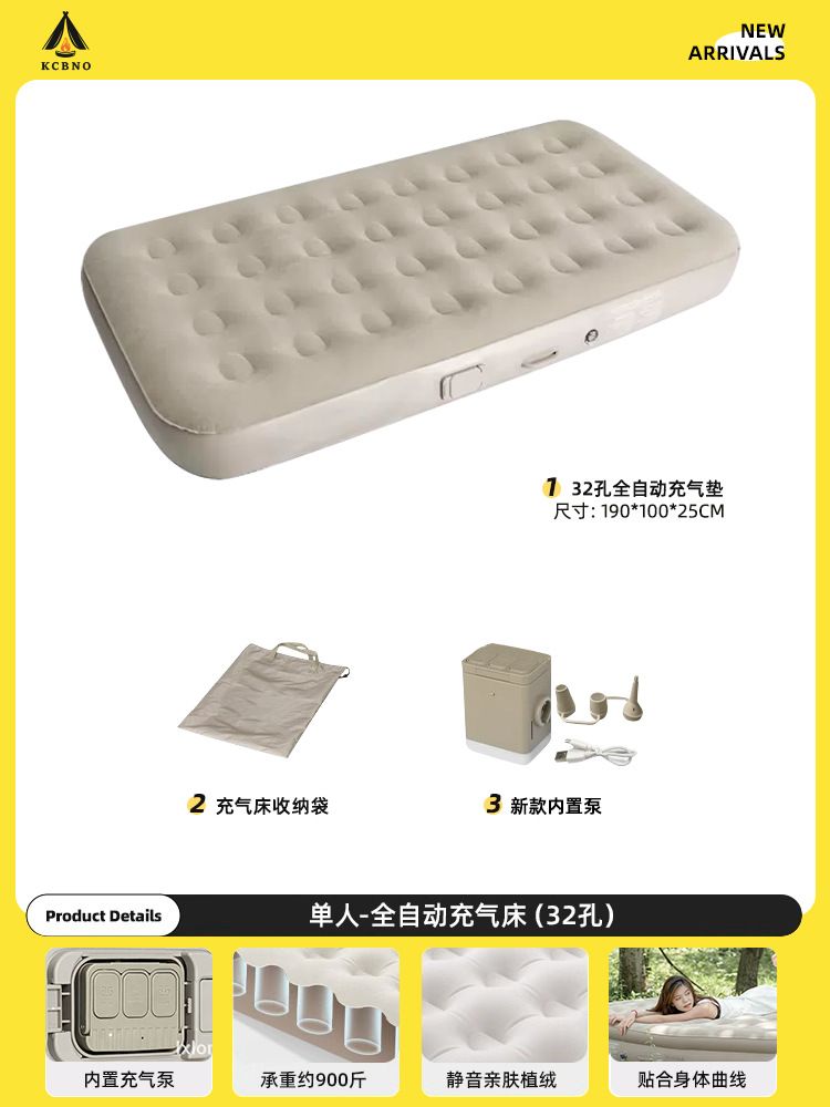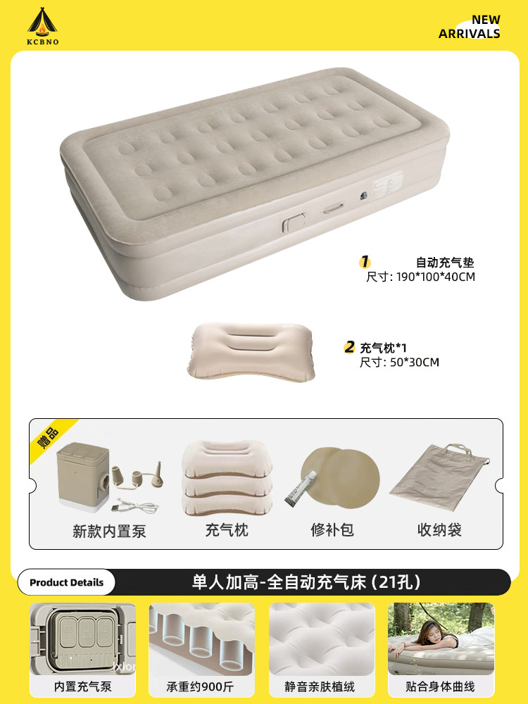 [толщина 25 см] Надувная кровать для двух человек - сырный цвет полностью автоматический (в комплект входит подушка из персиковой кожи)