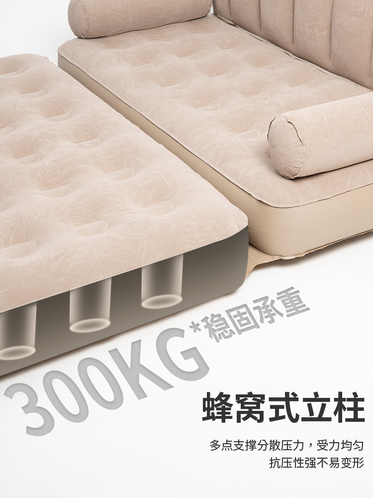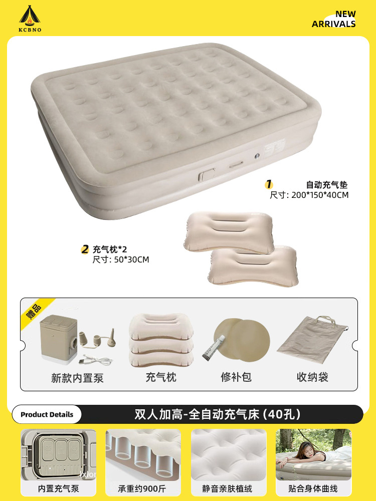 [Трехслойное увеличение 40 см] Надувная кровать двуспальная - сырный цвет полностью автоматический (поставляется с бархатом персиковой кожи