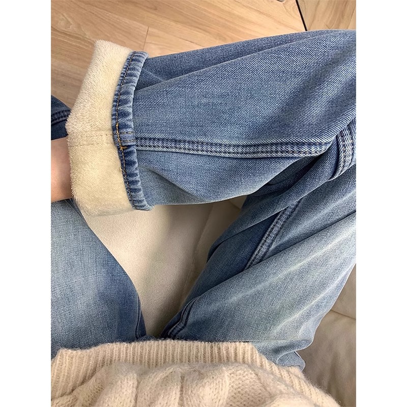 Главная страница > Плюшевые толстые джинсы Женская высокая талия зимой большой размер толстый мм рыхлый тонкий узкий грушевидный корпус широкие брюки