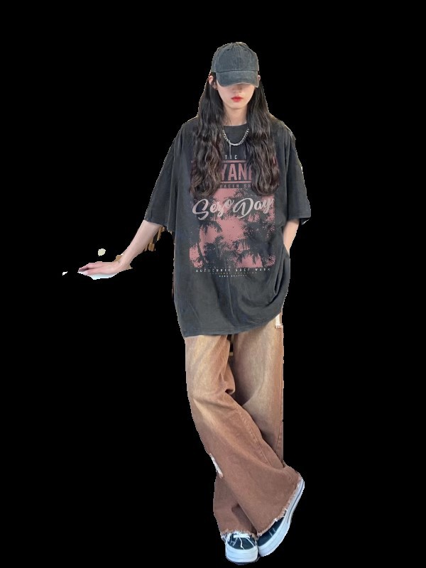 Главная страница > Хлопок 100% трепетание волос американский ретро серый носить футболку большого размера с короткими рукавами летняя европейская и американская мода топ