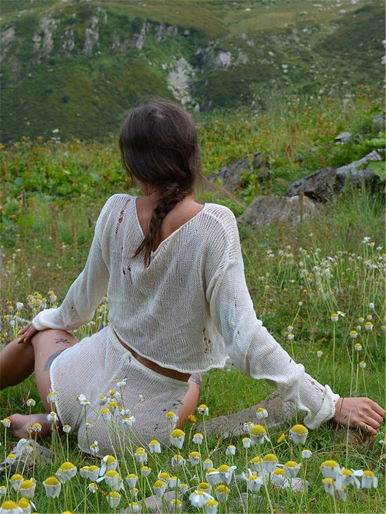 Главная страница > Вязаный женский костюм из двух частей на весну и лето 2023 года, новый солнцезащитный крем Seaside Holiday, короткий топ, европейские и американские сексуальные шорты, костюм