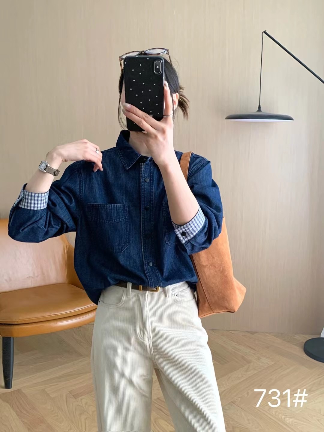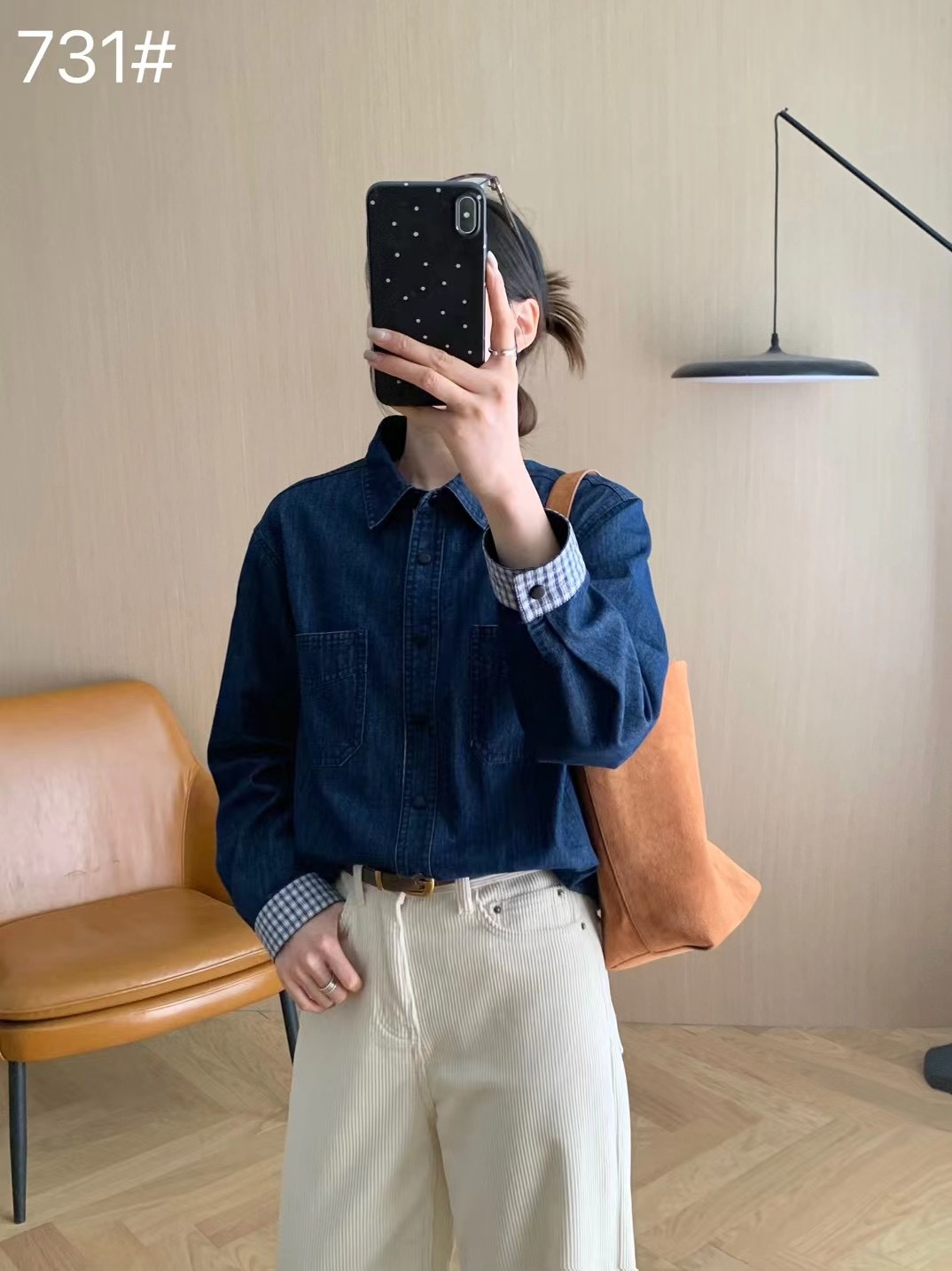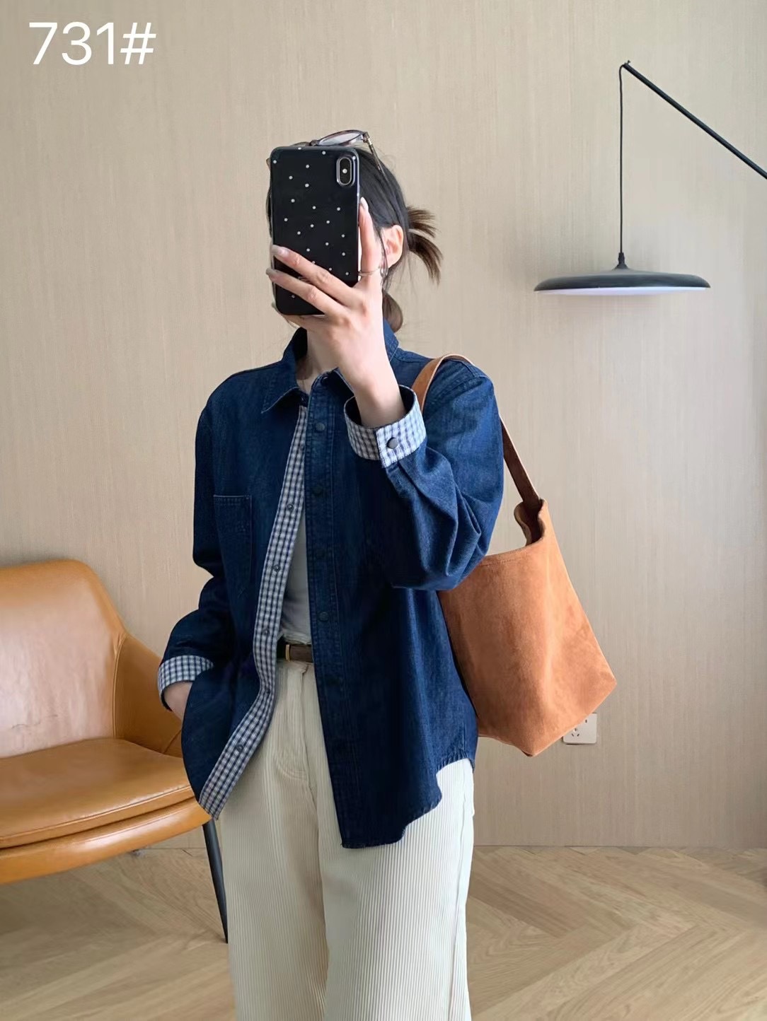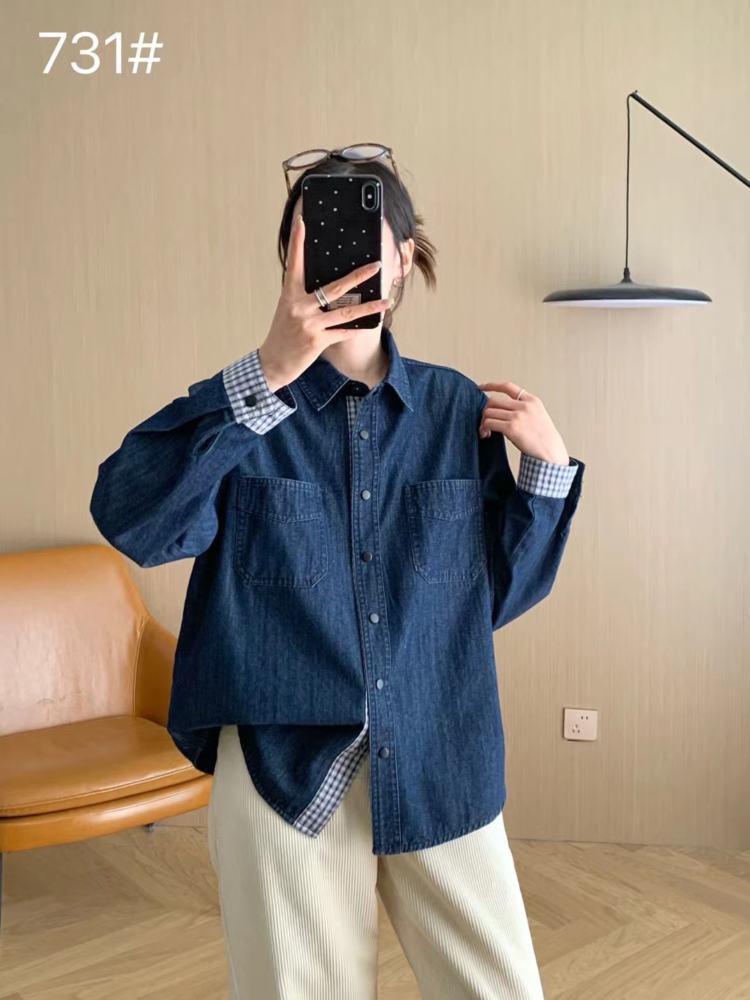 Главная страница > Осенняя новая джинсовая куртка-рубашка в клетку с эффектом выстиранного денима для женщин, свежая и винтажная рубашка-куртка в японском стиле.