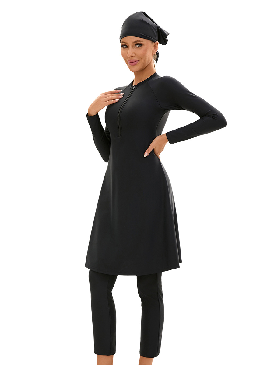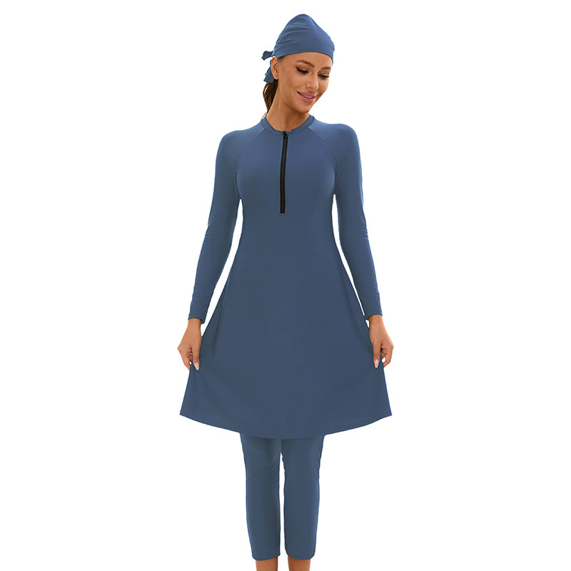 Главная страница > Мусульманский купальник с длинными рукавами из трех частей для женской внешней торговли Европа и США сплошной цвет полный солнцезащитный купальник купальник оптом