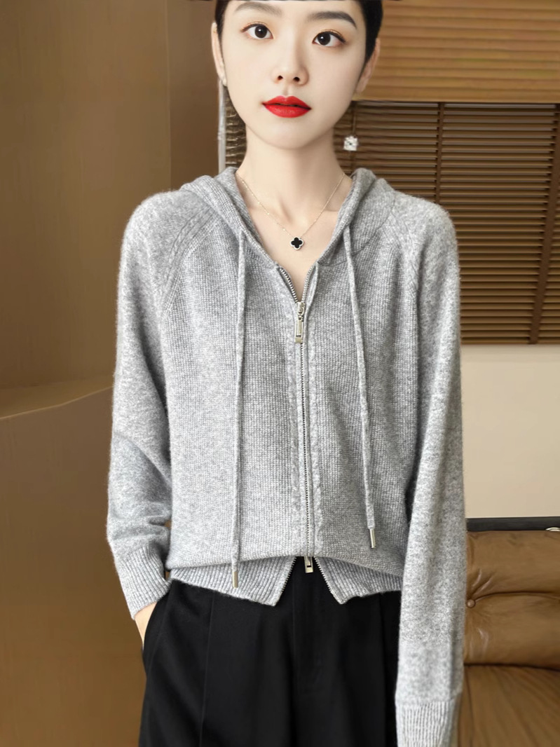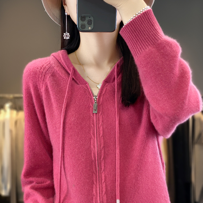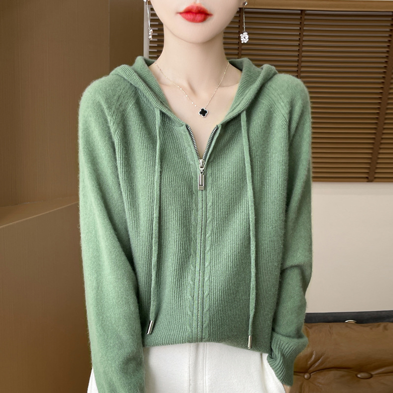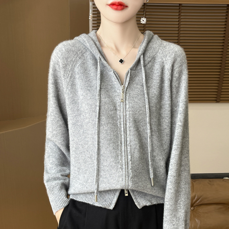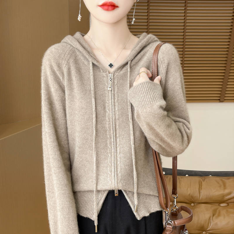 Главная страница > Трикотажный кардиган Корейская версия толстовка 2024 Новый стиль осень-зима шерстяная толстовка с двойной молнией с капюшоном свитер куртка