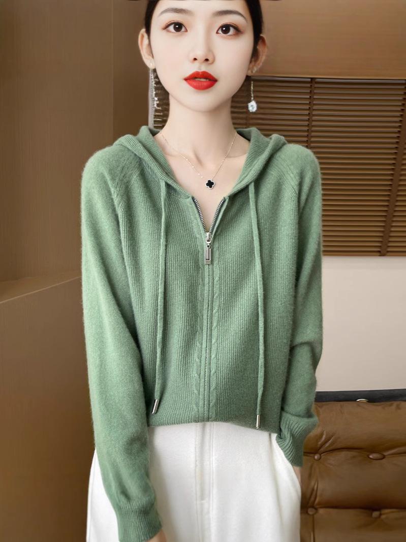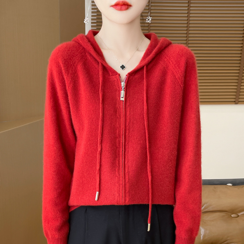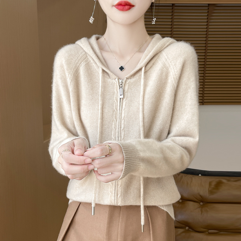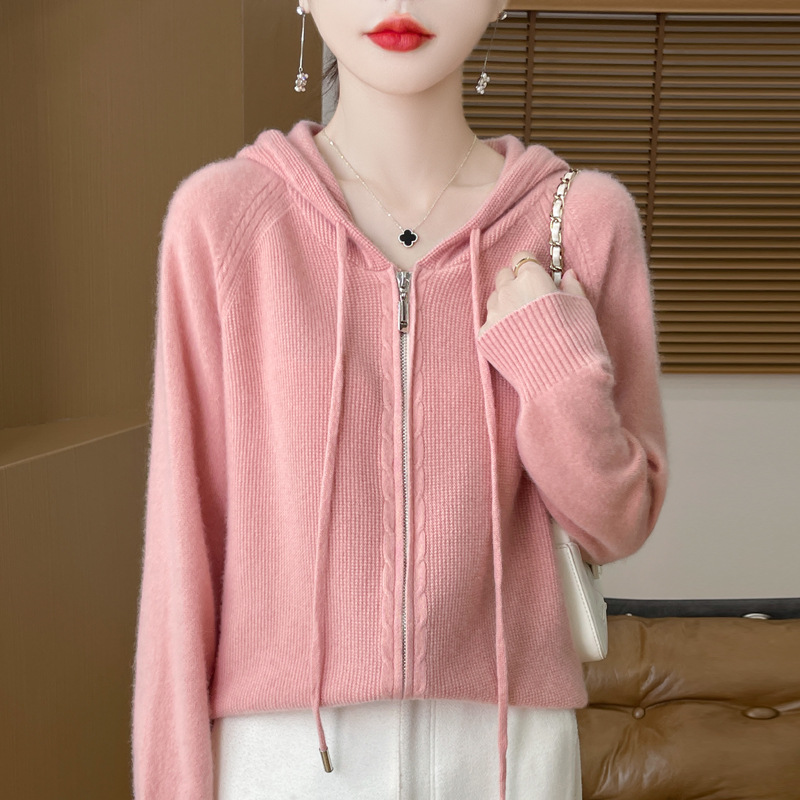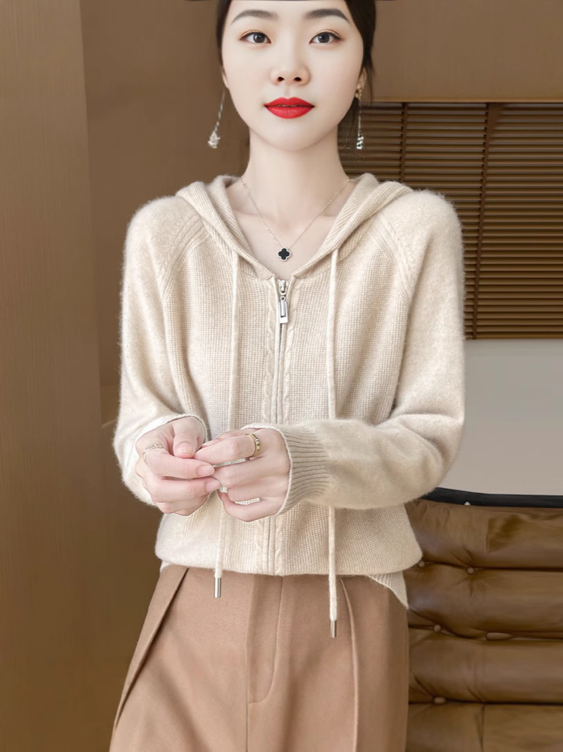 Главная страница > Трикотажный кардиган Корейская версия толстовка 2024 Новый стиль осень-зима шерстяная толстовка с двойной молнией с капюшоном свитер куртка