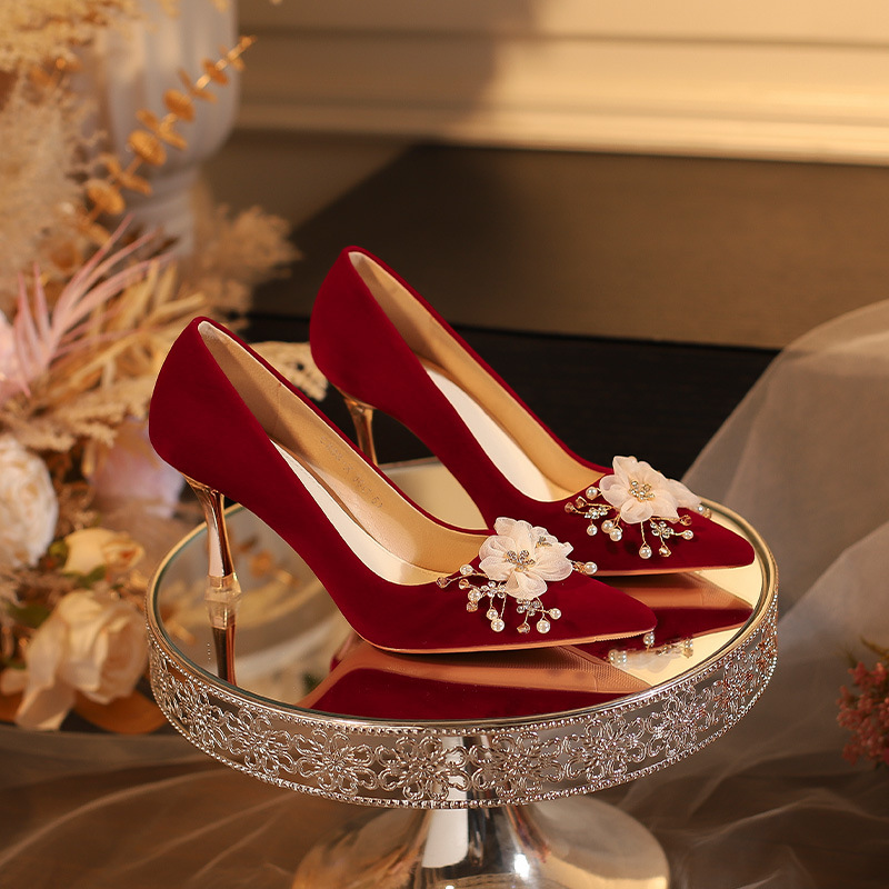 Главная страница > C888-105 замшевые красные туфли на высоком каблуке с острым носком, свадебное банкетное платье, свадебные туфли, туфли подружки невесты, женские туфли на плоской подошве