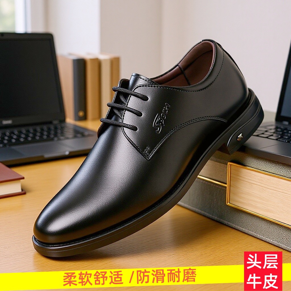 Мужские туфли из натуральной кожи, весенняя новинка, дышащие, деловые, классические, в британском стиле, на шнуровке, с мягкой подошвой, из мягкой кожи.
