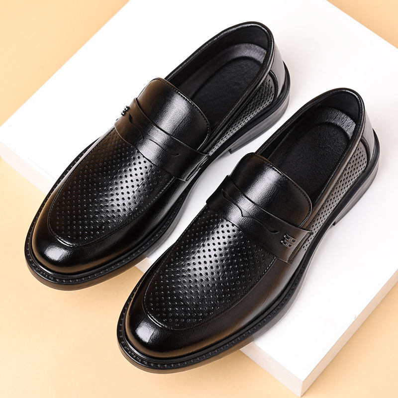 Главная страница > Мокасины, модные деловые кожаные туфли без шнуровки для мужчин, полые слипоны, дышащие шапочки в корейском стиле, Прямая доставка