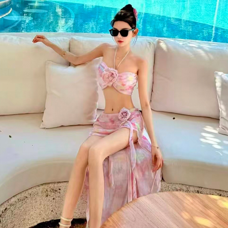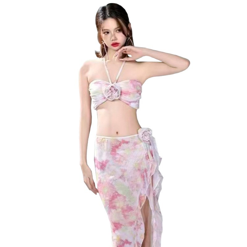 Фея Розовый Цветок Чистый Сладкий Сплит Юбка Бикини Купальница Женский отдых на пляже Горячие источники Новые
