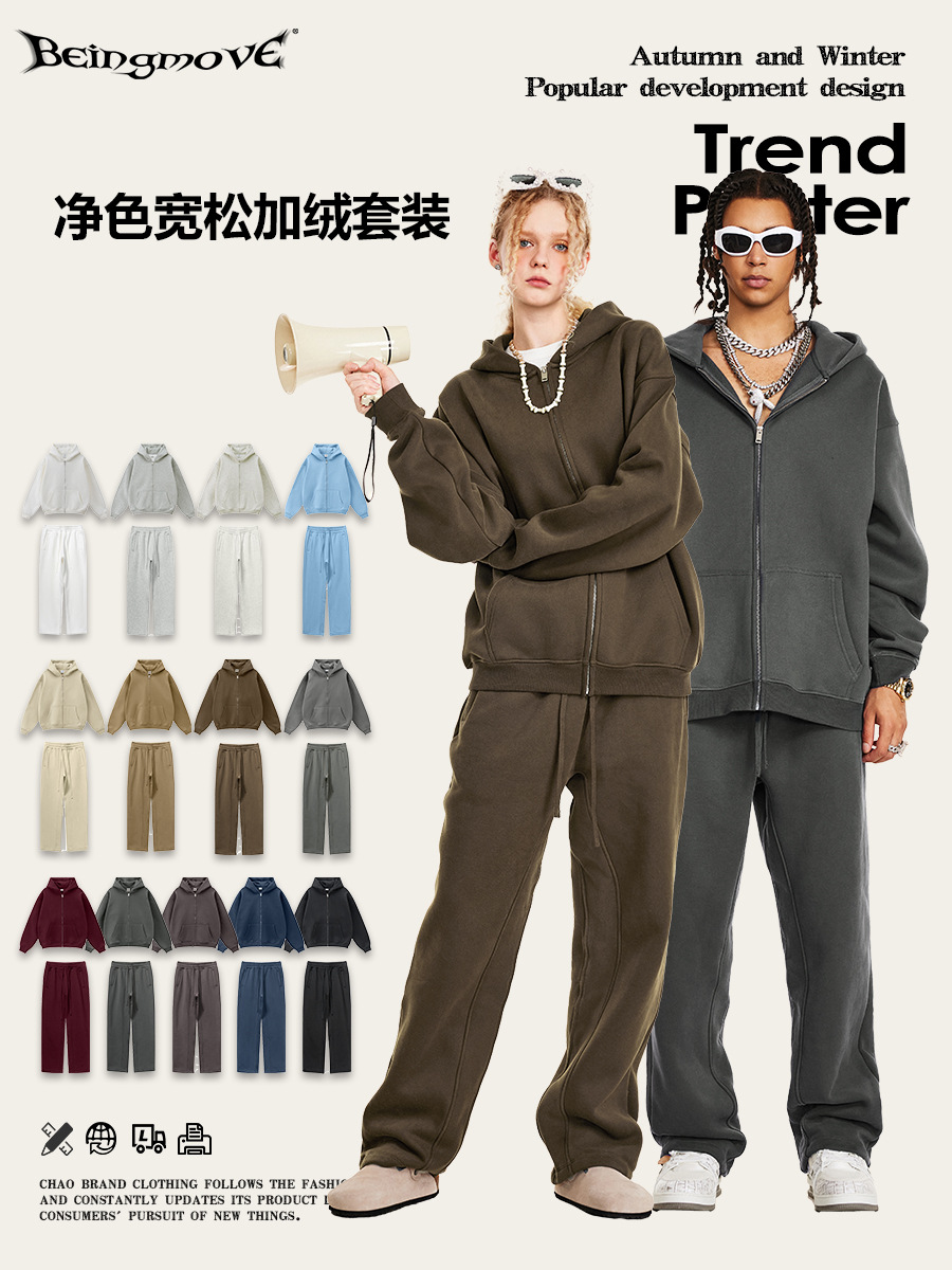 Главная страница > Мужской комплект: толстовка с капюшоном и брюки из флиса, в американском стиле, модный, повседневный, свободный крой, осень 2025