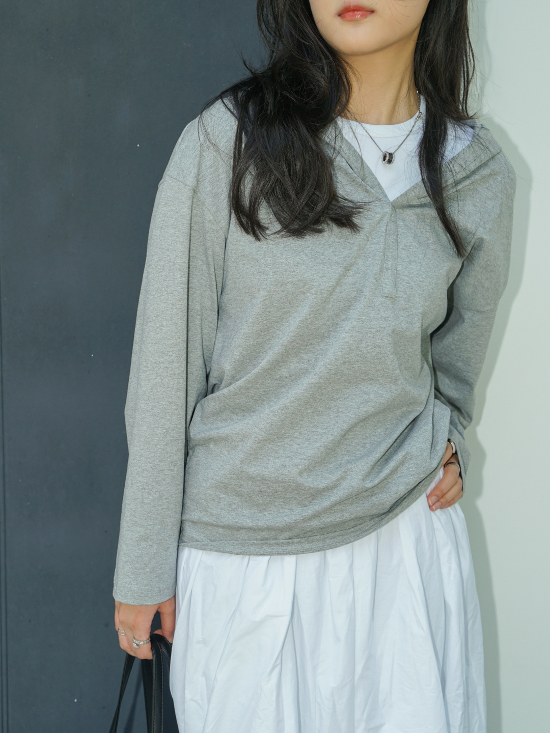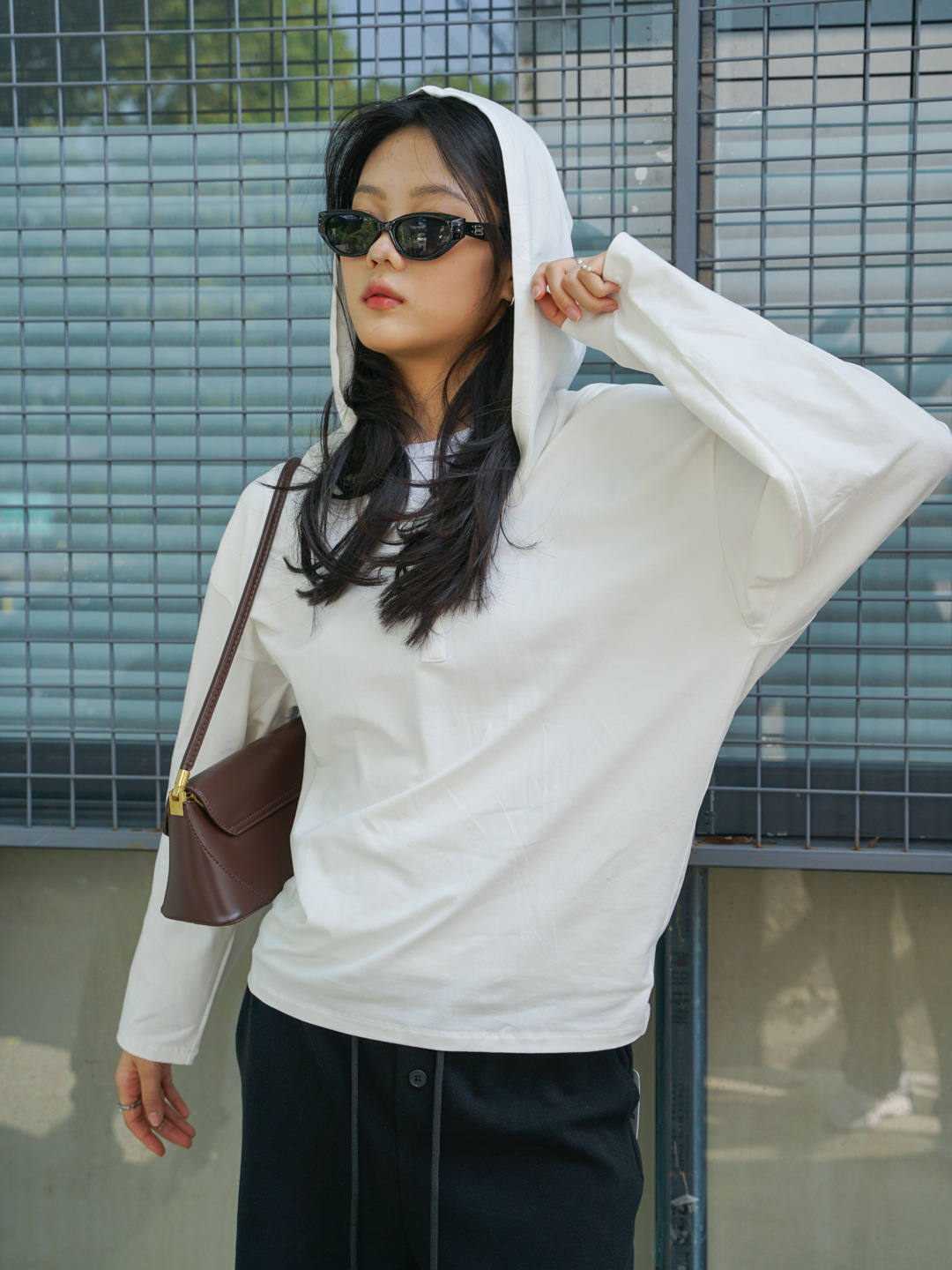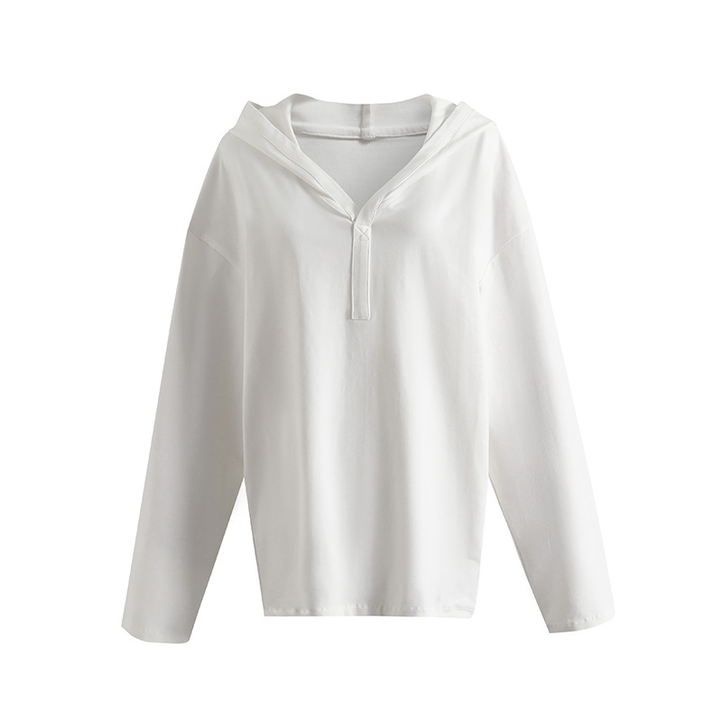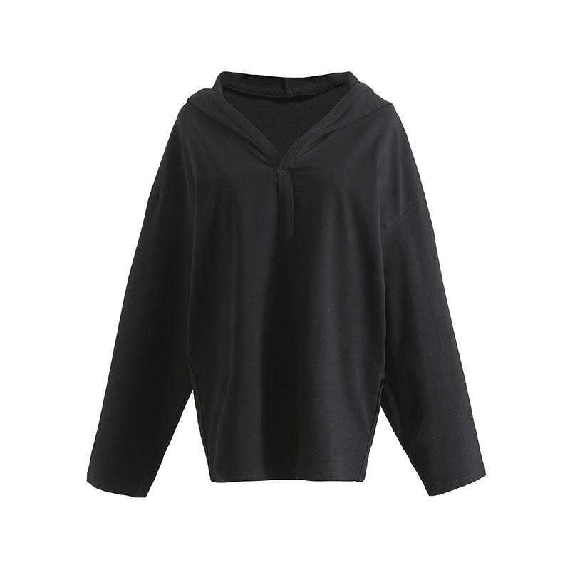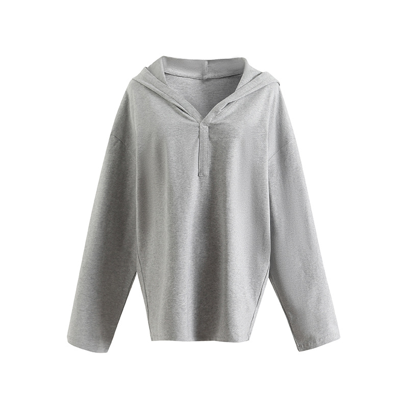 Главная страница > Новый ленивый стиль повседневный дикий с длинными рукавами и тонким V-образным вырезом с капюшоном свободный внутренний топ толстовка толстовка свитер 4505