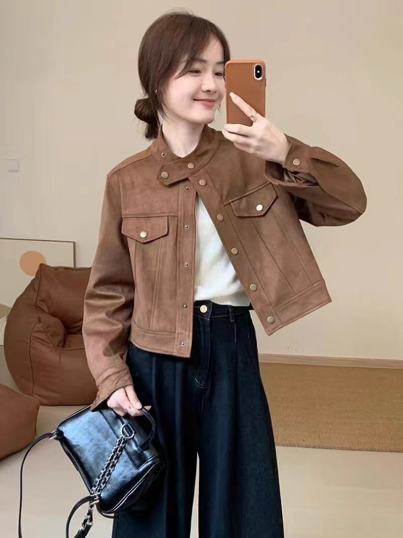 Подлинный бархат из оленьей кожи костюм короткая куртка 2024 осень новый ретро высокого уровня чувство нишевый куртка топ женский