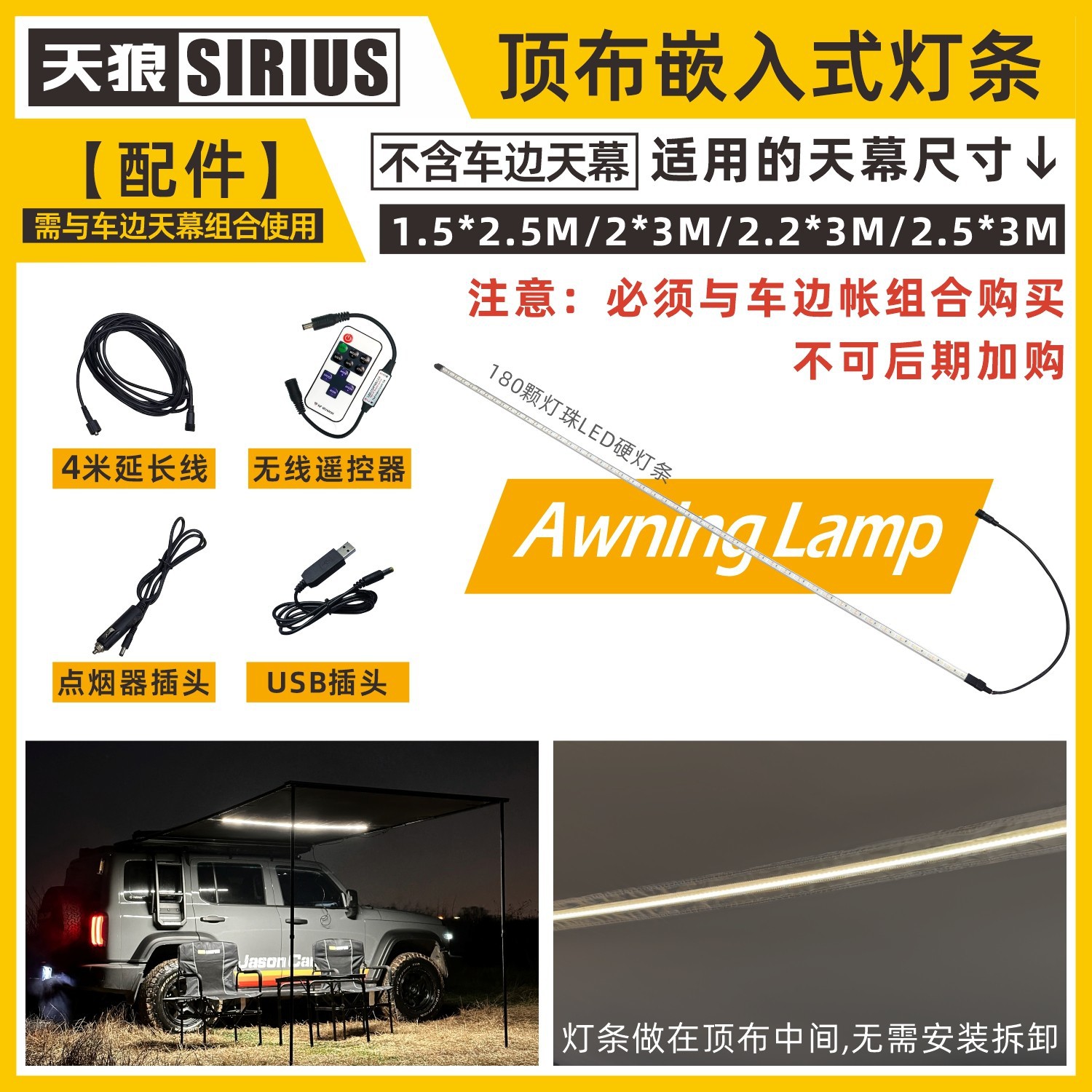 - [Полностью черный алюминиевый корпус] Кромка автомобиля 2,5*3 м