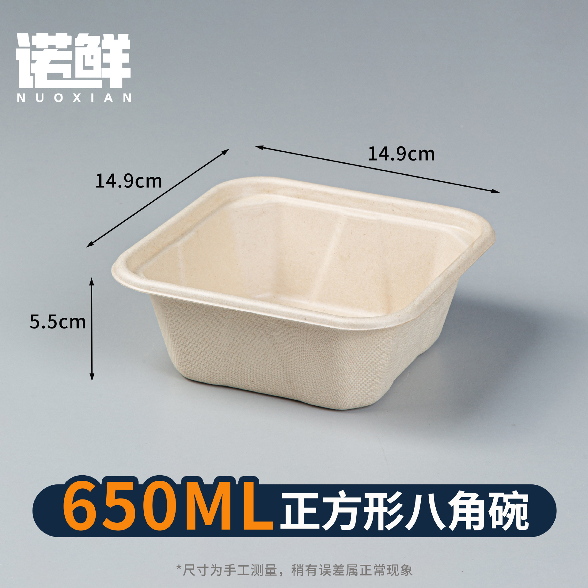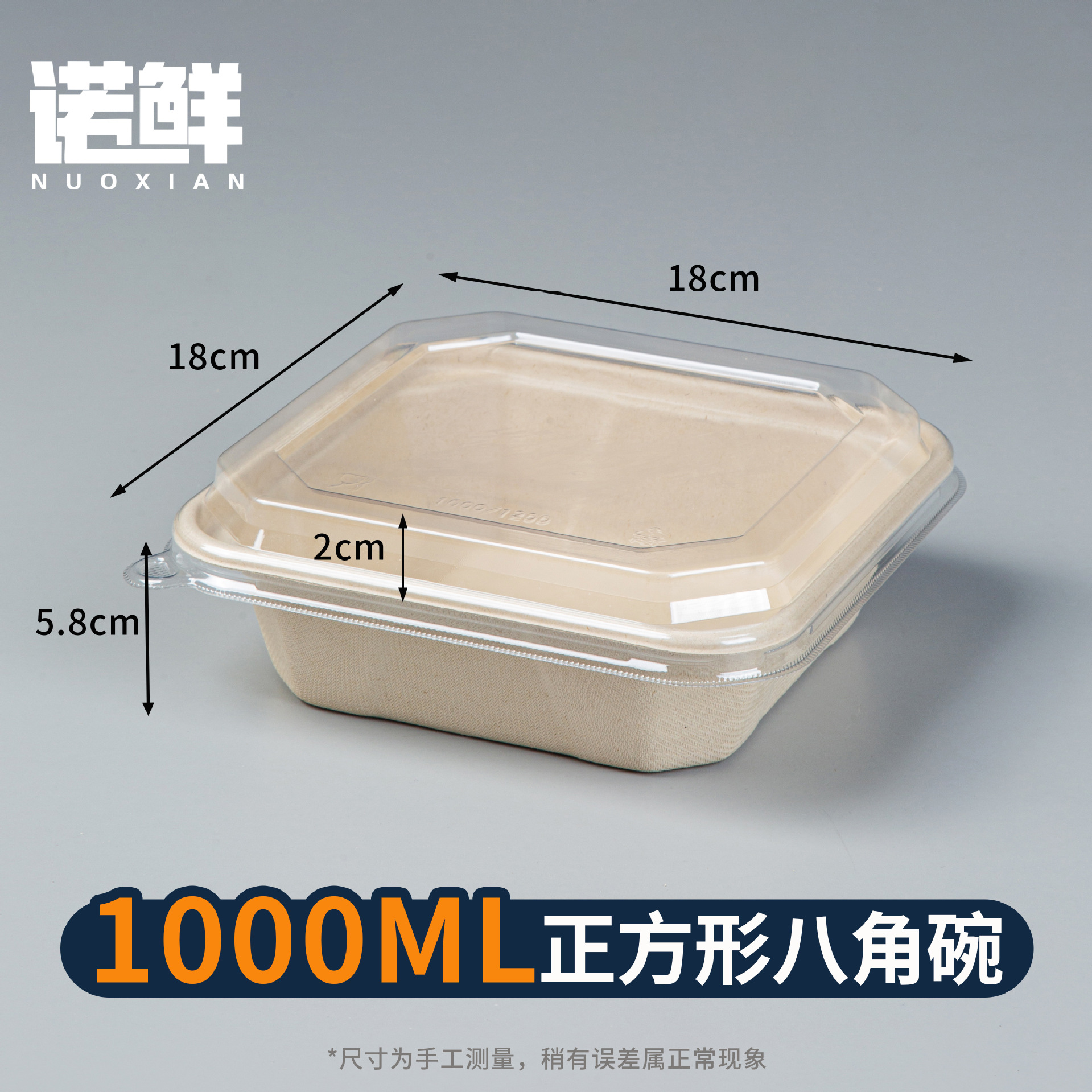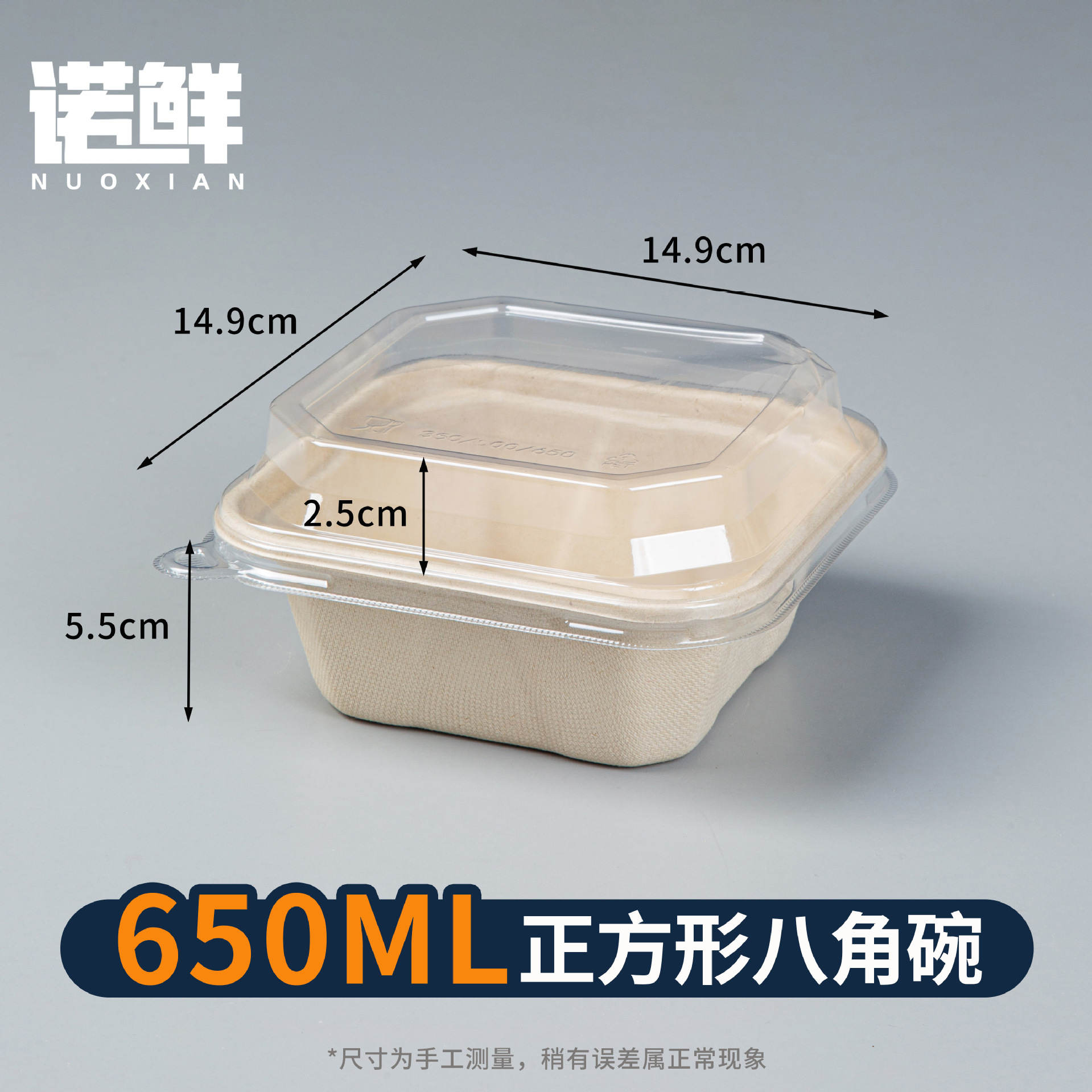 Квадратная восьмиугольная миска из мякоти 650 мл + прозрачная крышка 1 комплект