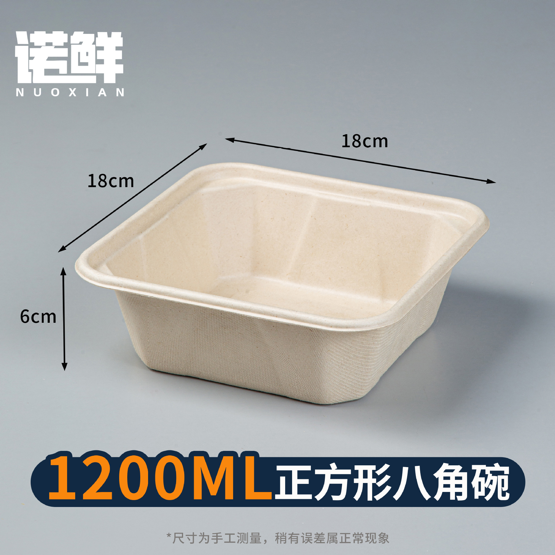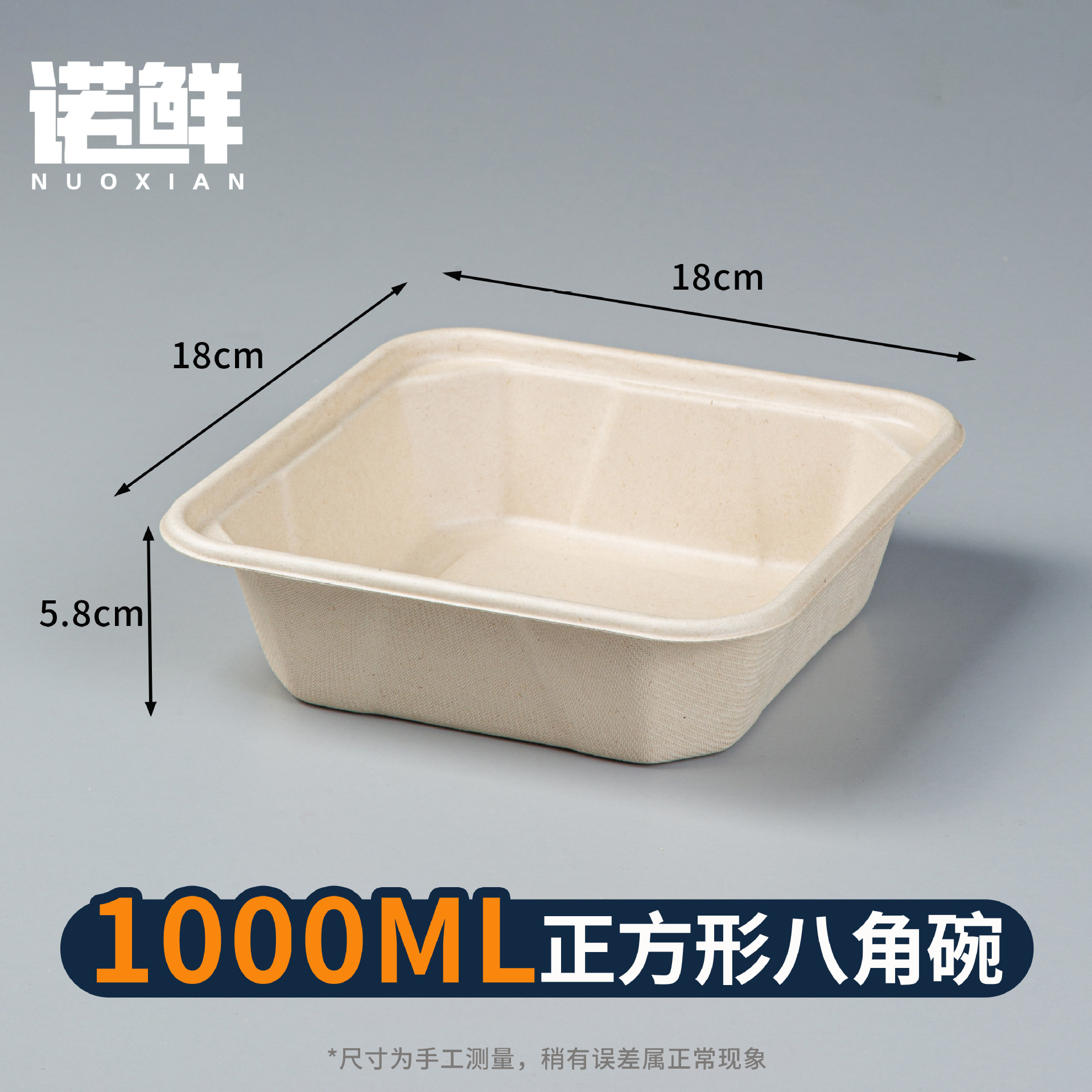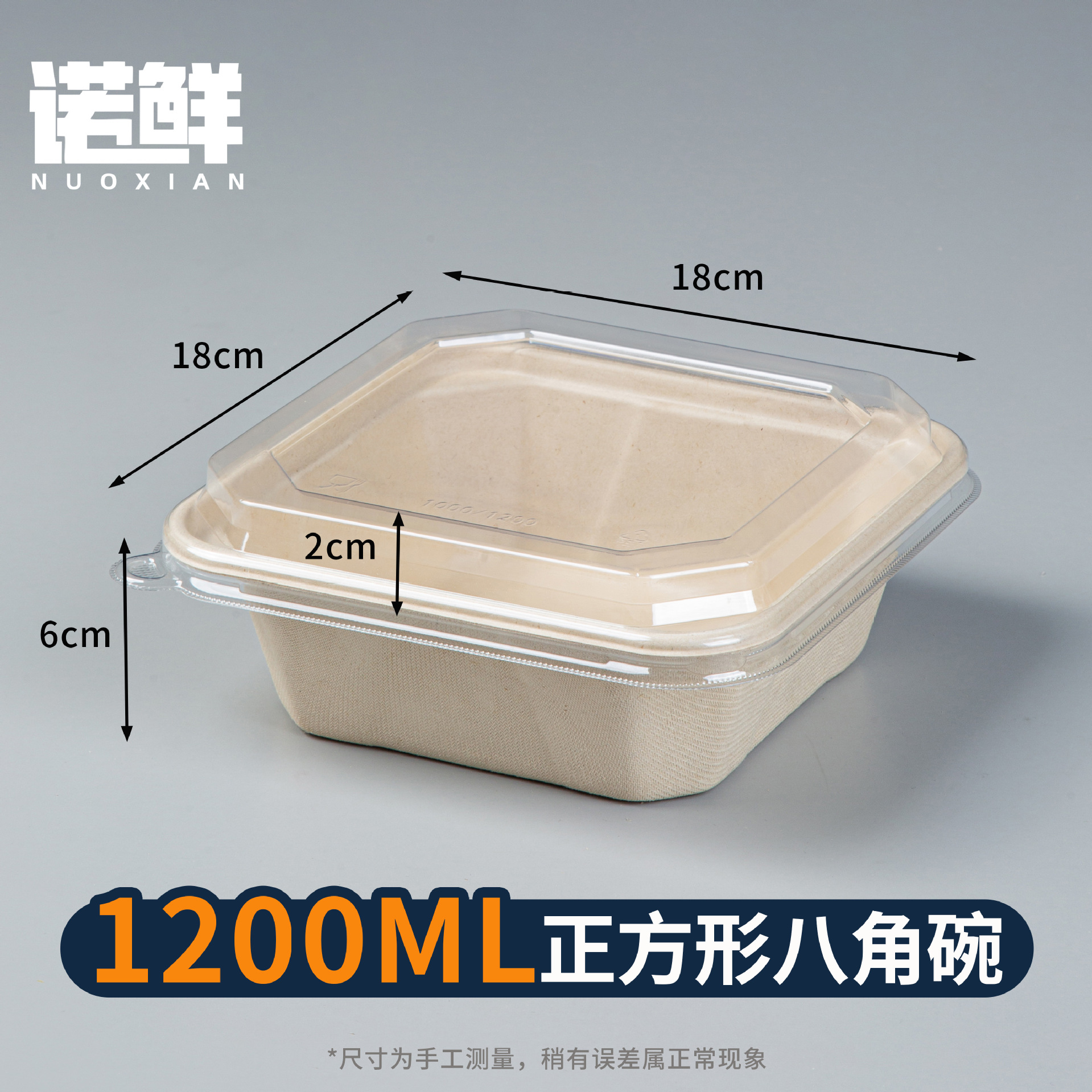 Квадратная восьмиугольная миска из мякоти 650 мл + прозрачная крышка 1 комплект