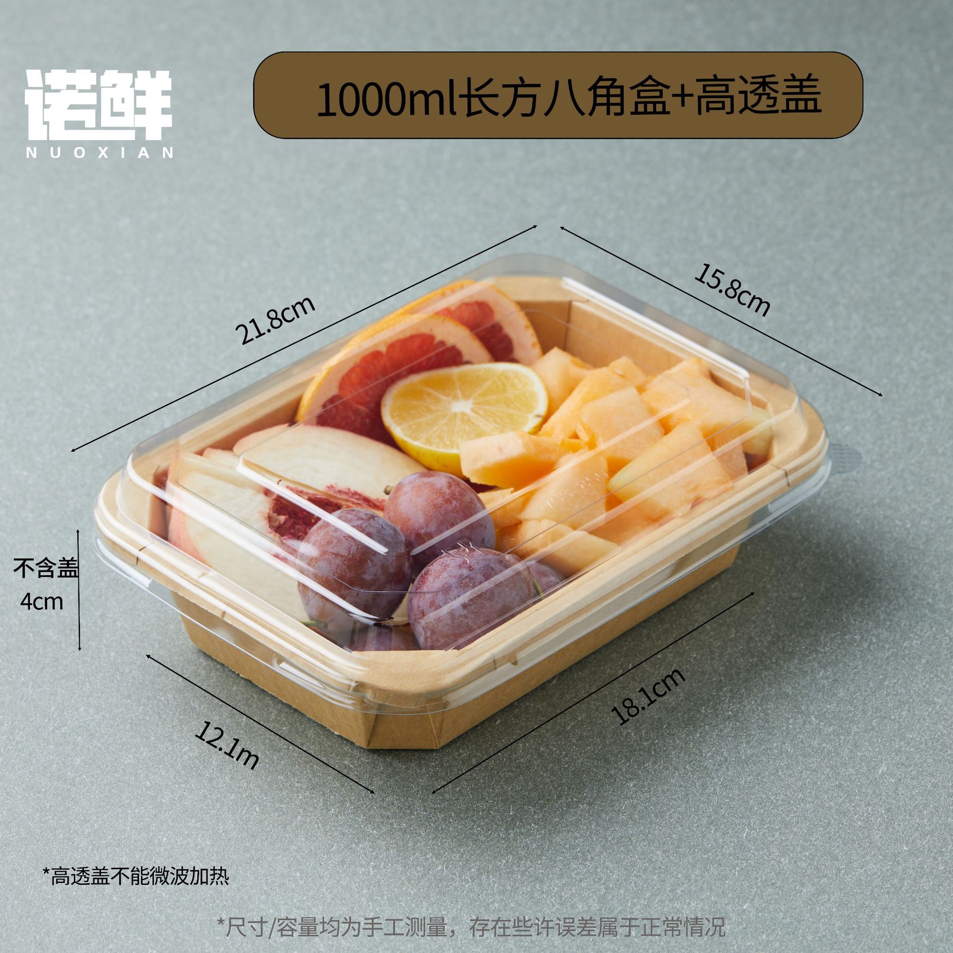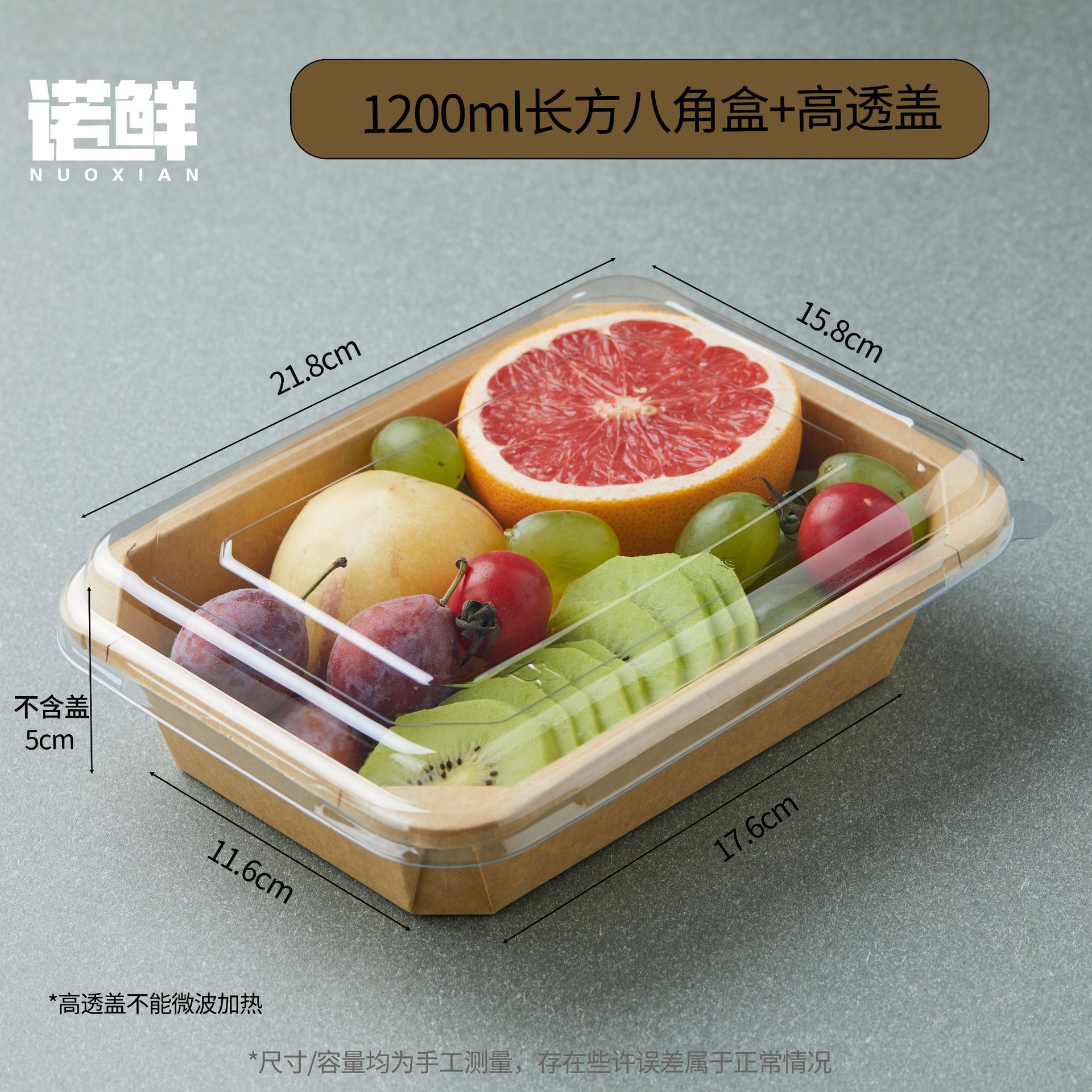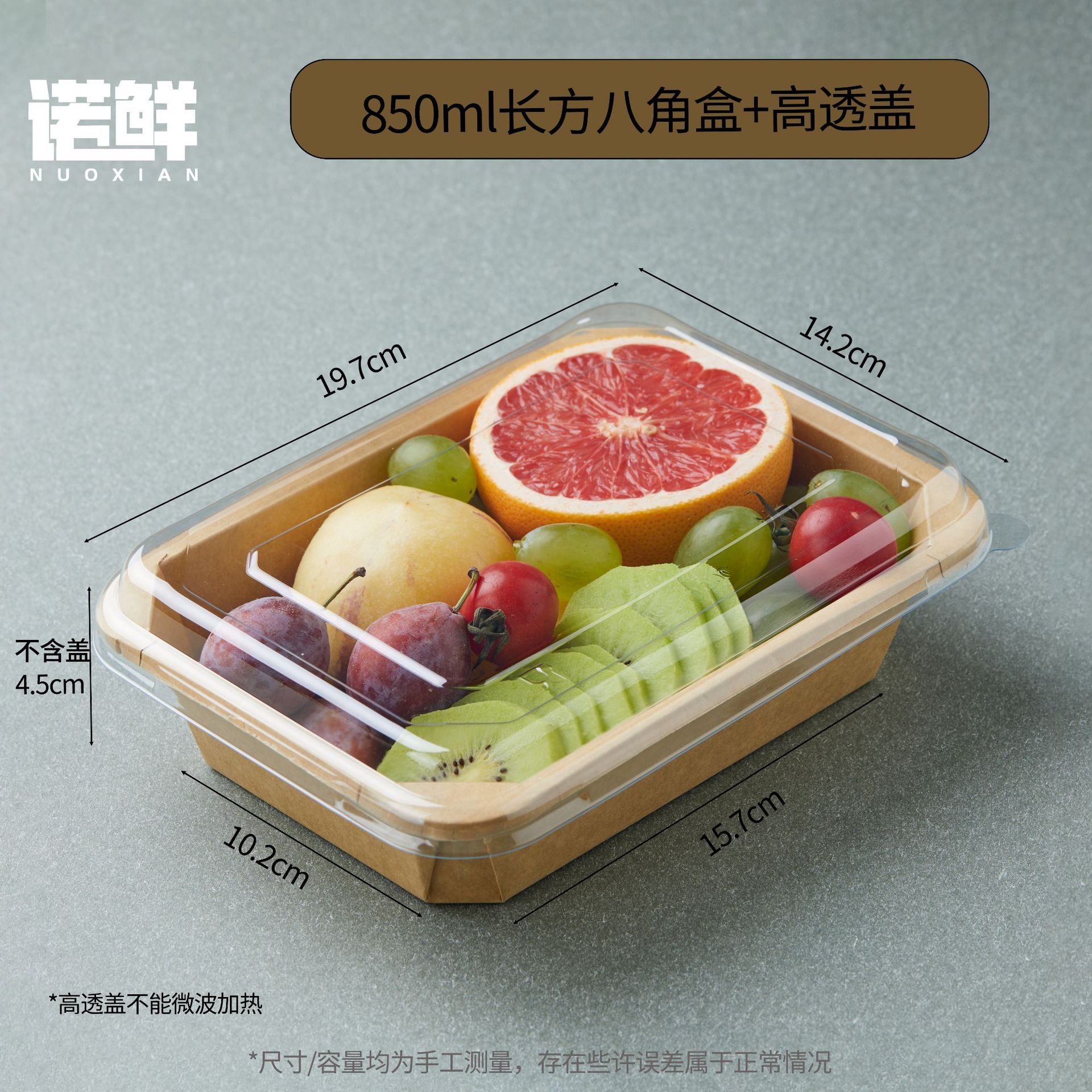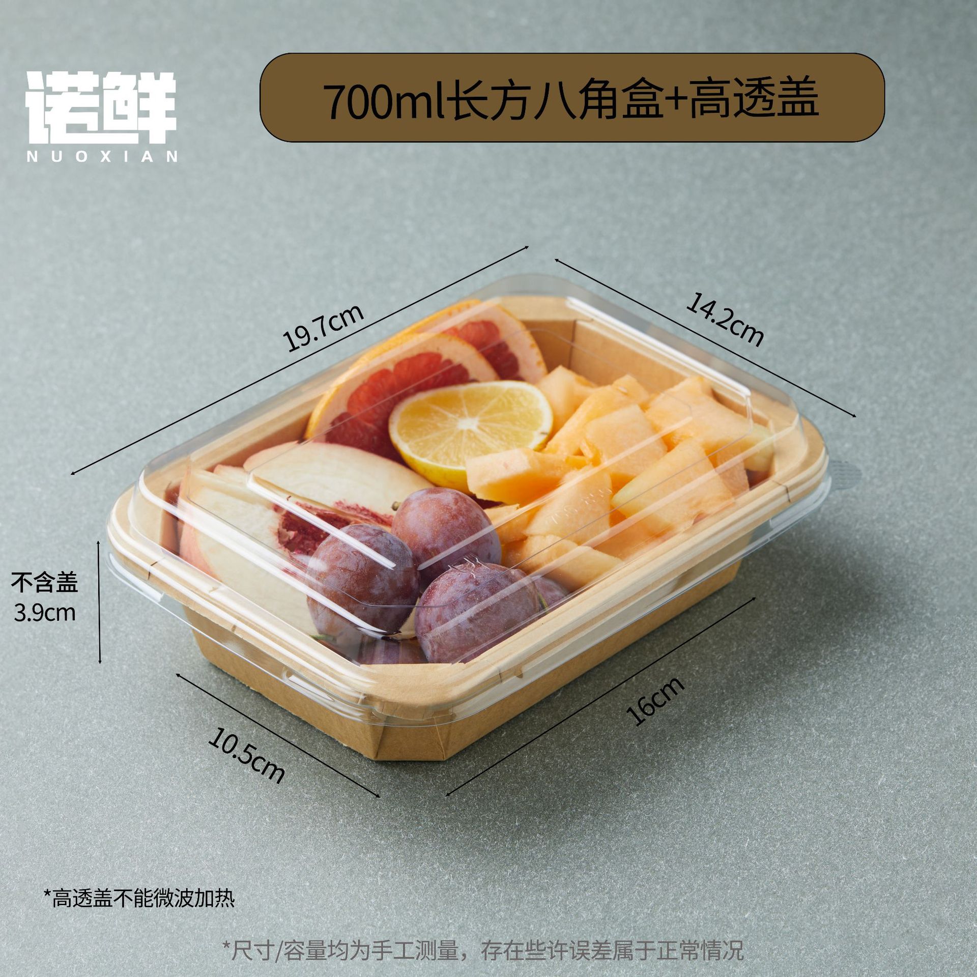 Одноразовая крафт-бумага длинная квадратная восьмиугольная миска для пикника для путешествий упакованная коробка на вынос коробка для резки фруктов высокая прозрачная выпуклая крышка водонепроницаемая