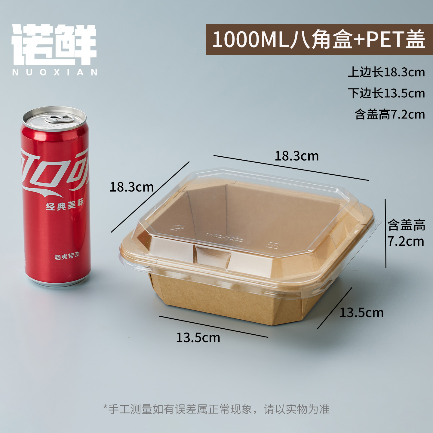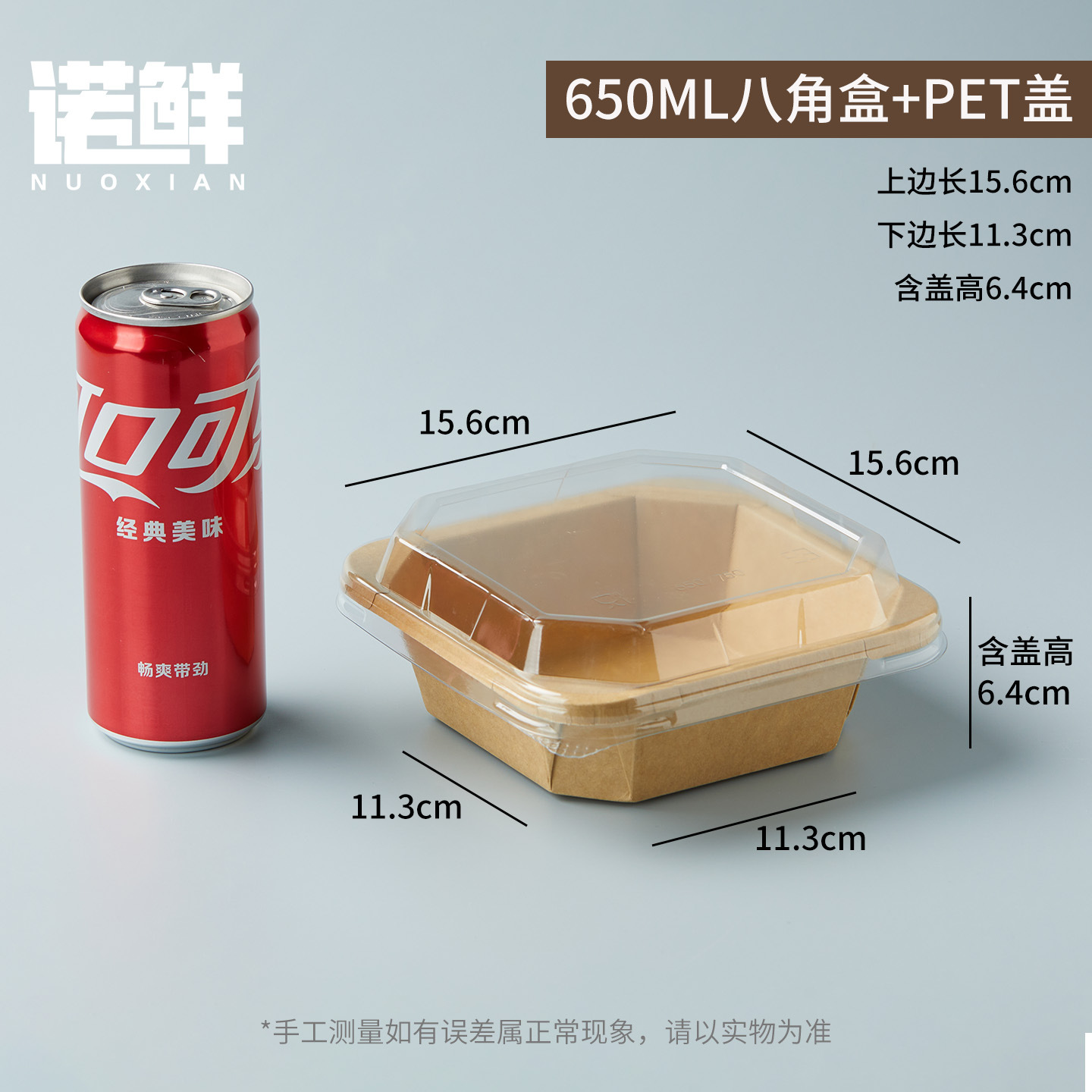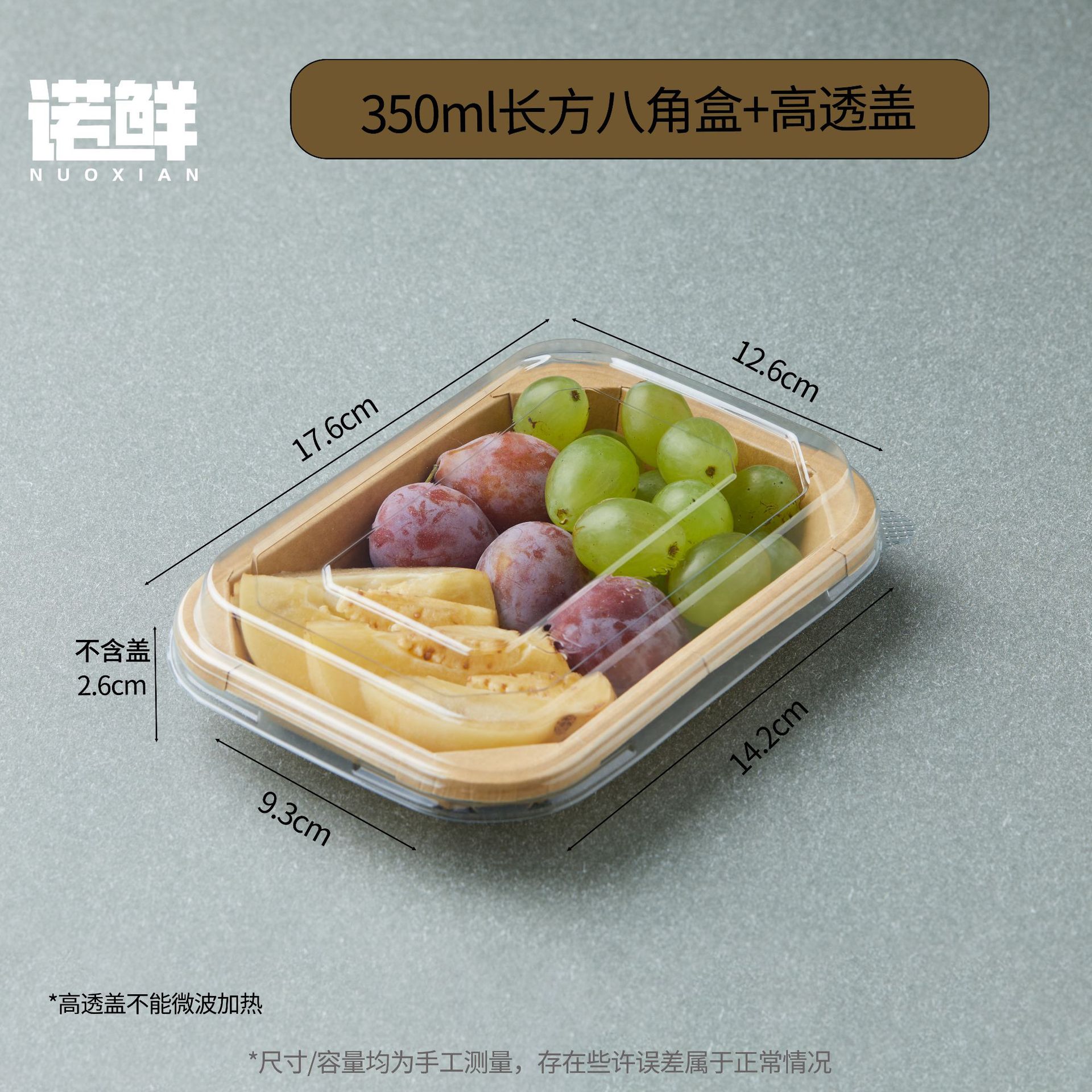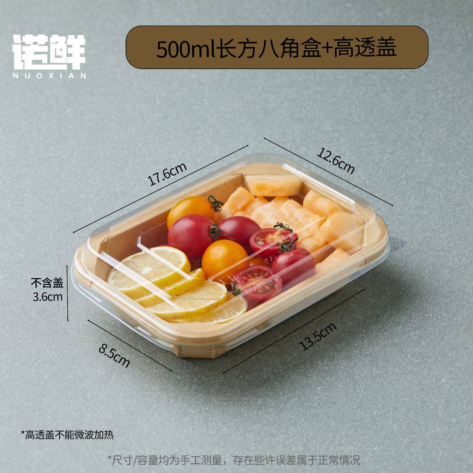 Одноразовая крафт-бумага длинная квадратная восьмиугольная миска для пикника для путешествий упакованная коробка на вынос коробка для резки фруктов высокая прозрачная выпуклая крышка водонепроницаемая