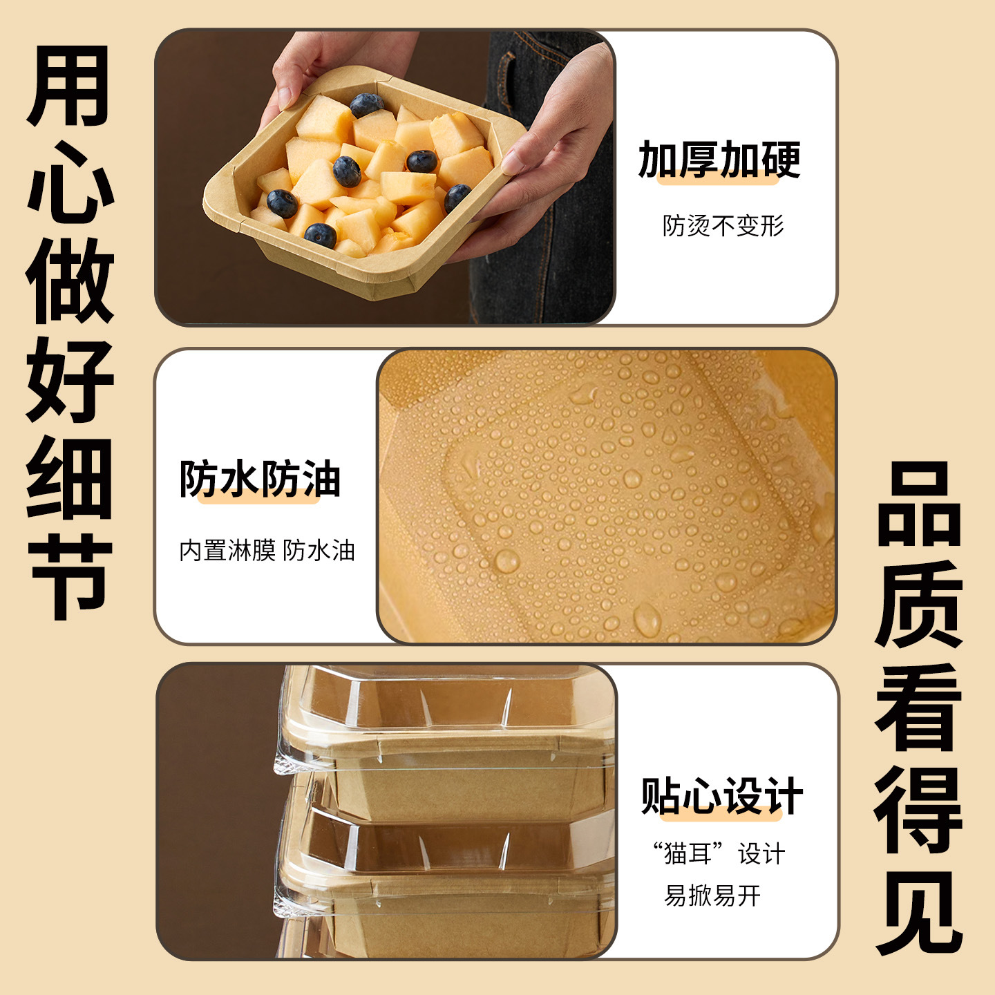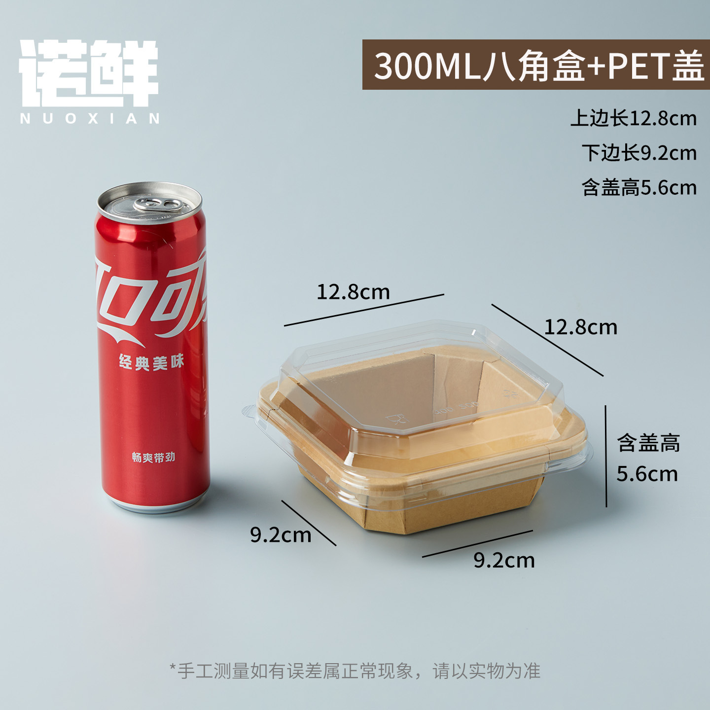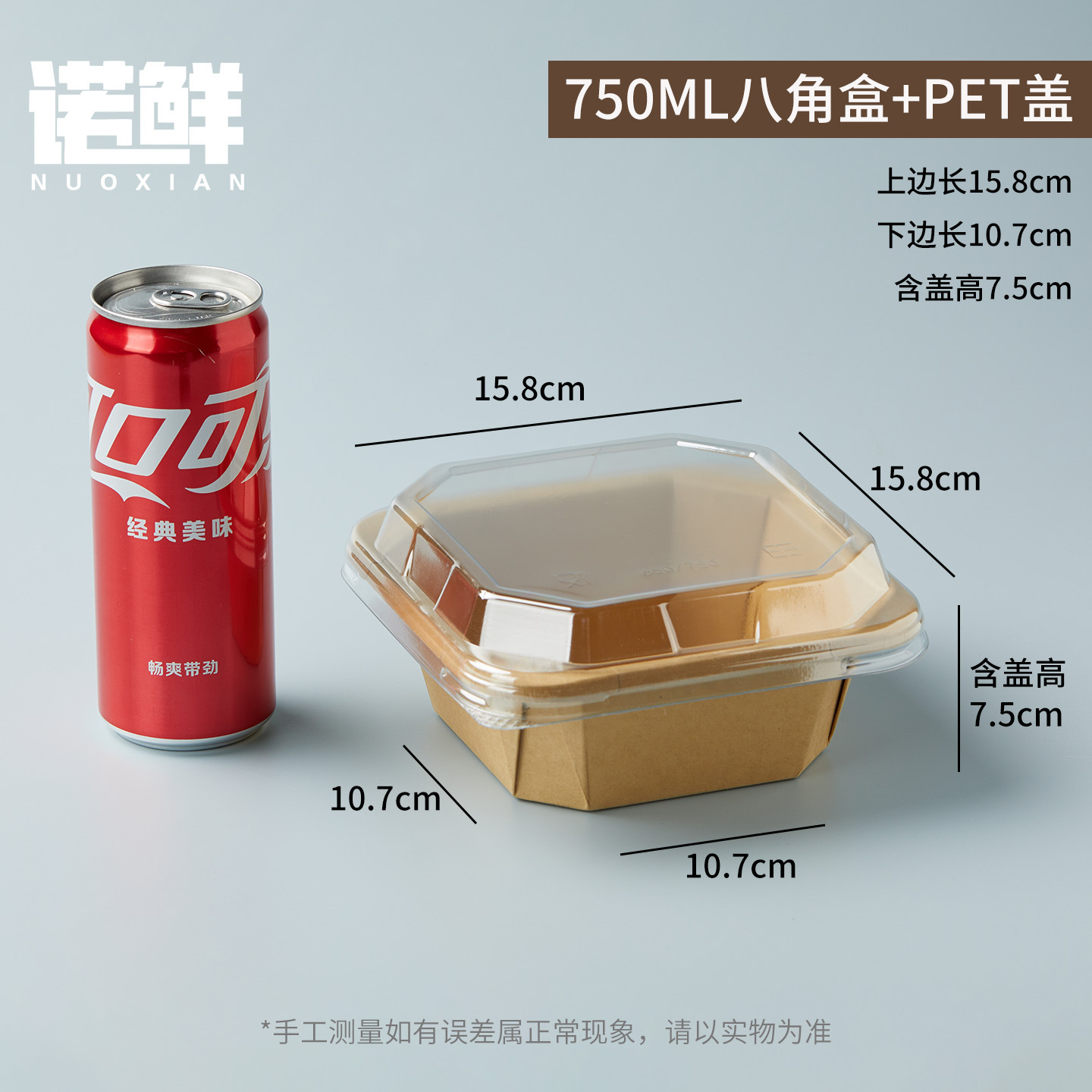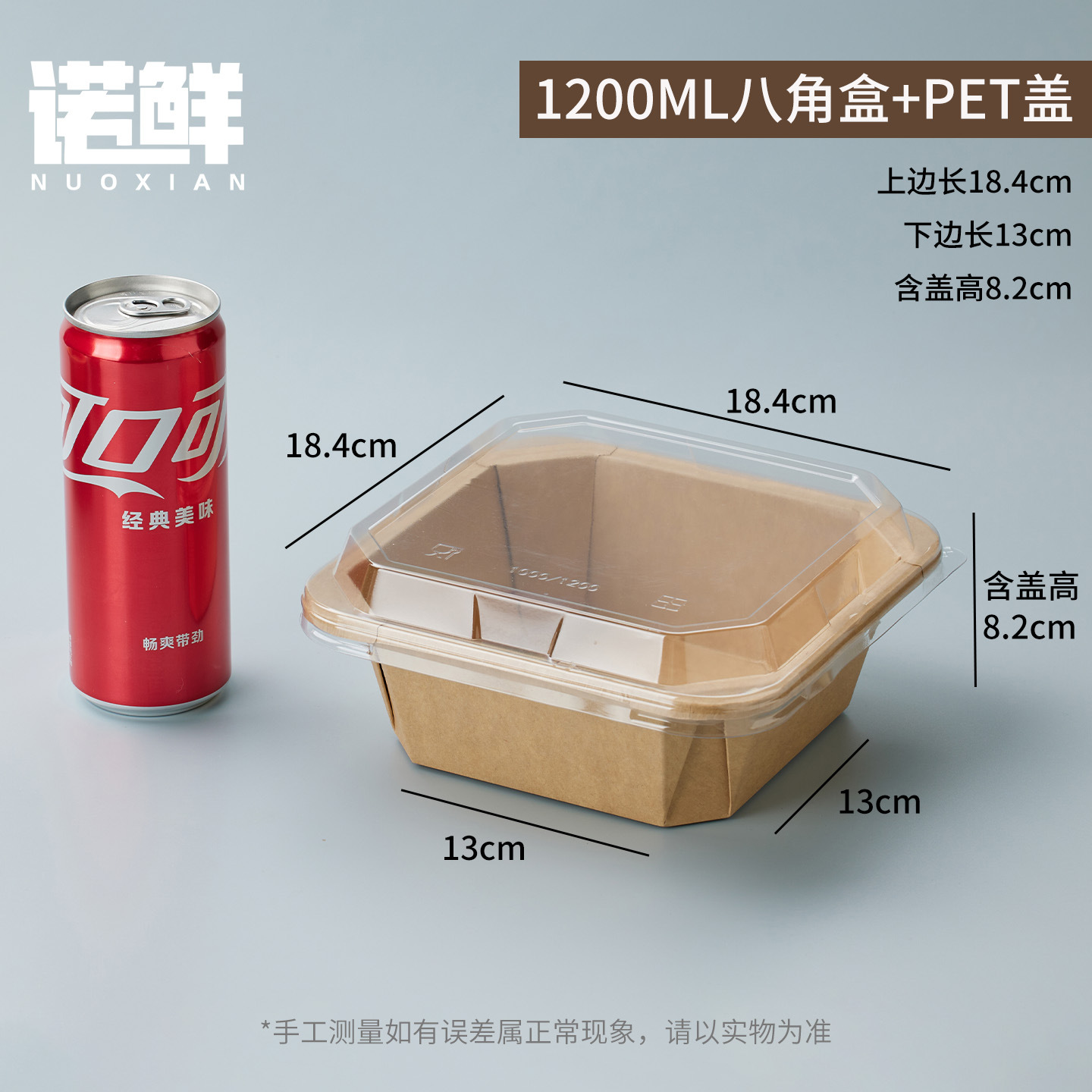 Одноразовая крафт-бумага длинная квадратная восьмиугольная миска для пикника для путешествий упакованная коробка на вынос коробка для резки фруктов высокая прозрачная выпуклая крышка водонепроницаемая