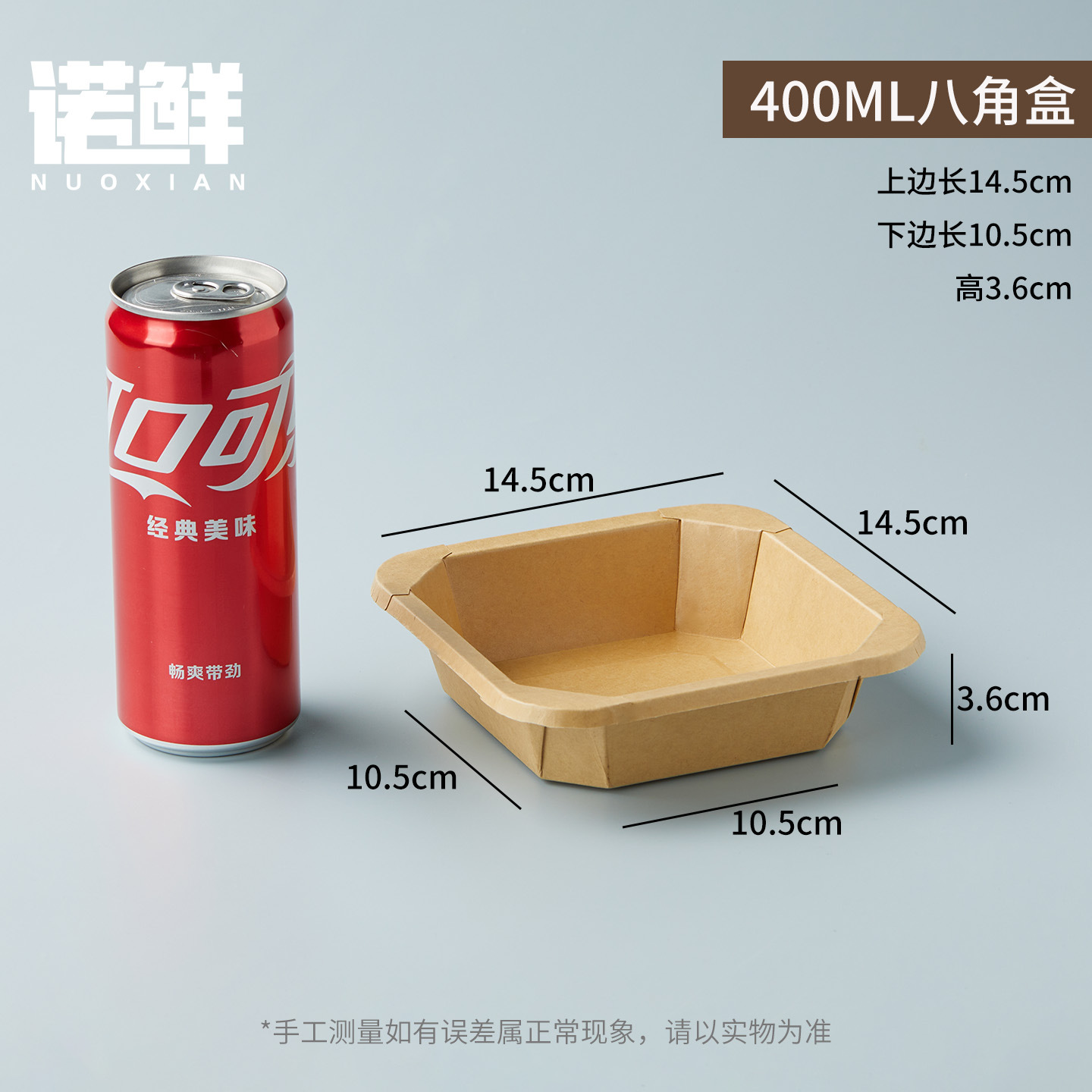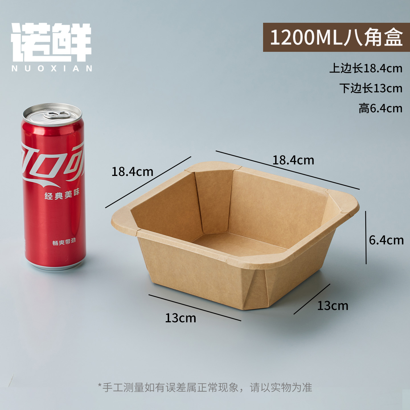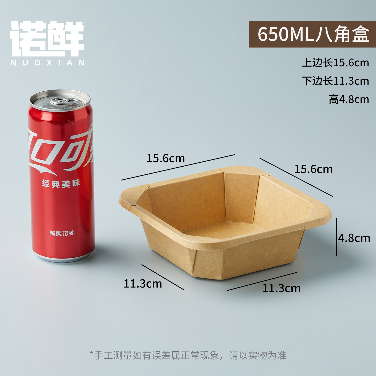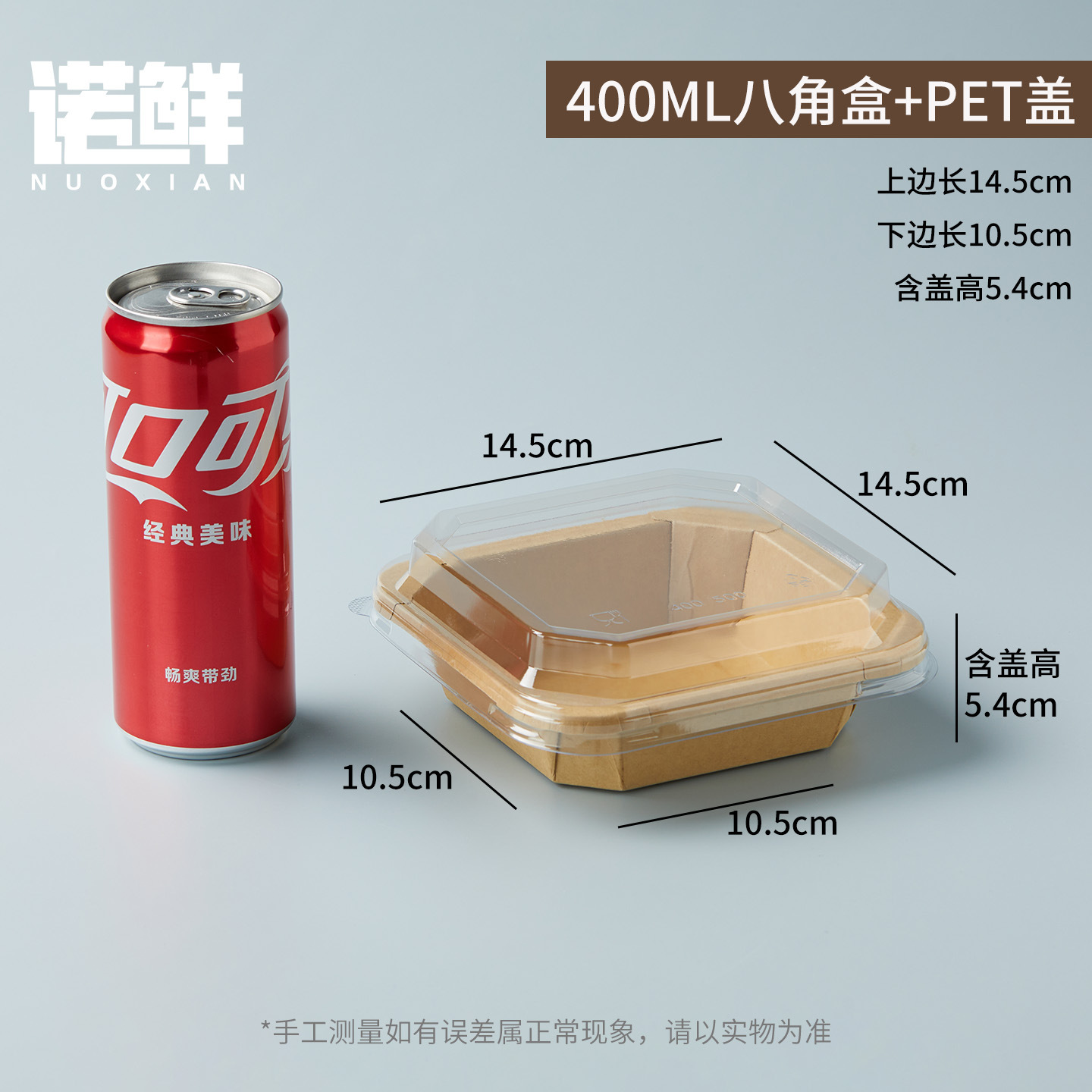 Одноразовая крафт-бумага длинная квадратная восьмиугольная миска для пикника для путешествий упакованная коробка на вынос коробка для резки фруктов высокая прозрачная выпуклая крышка водонепроницаемая