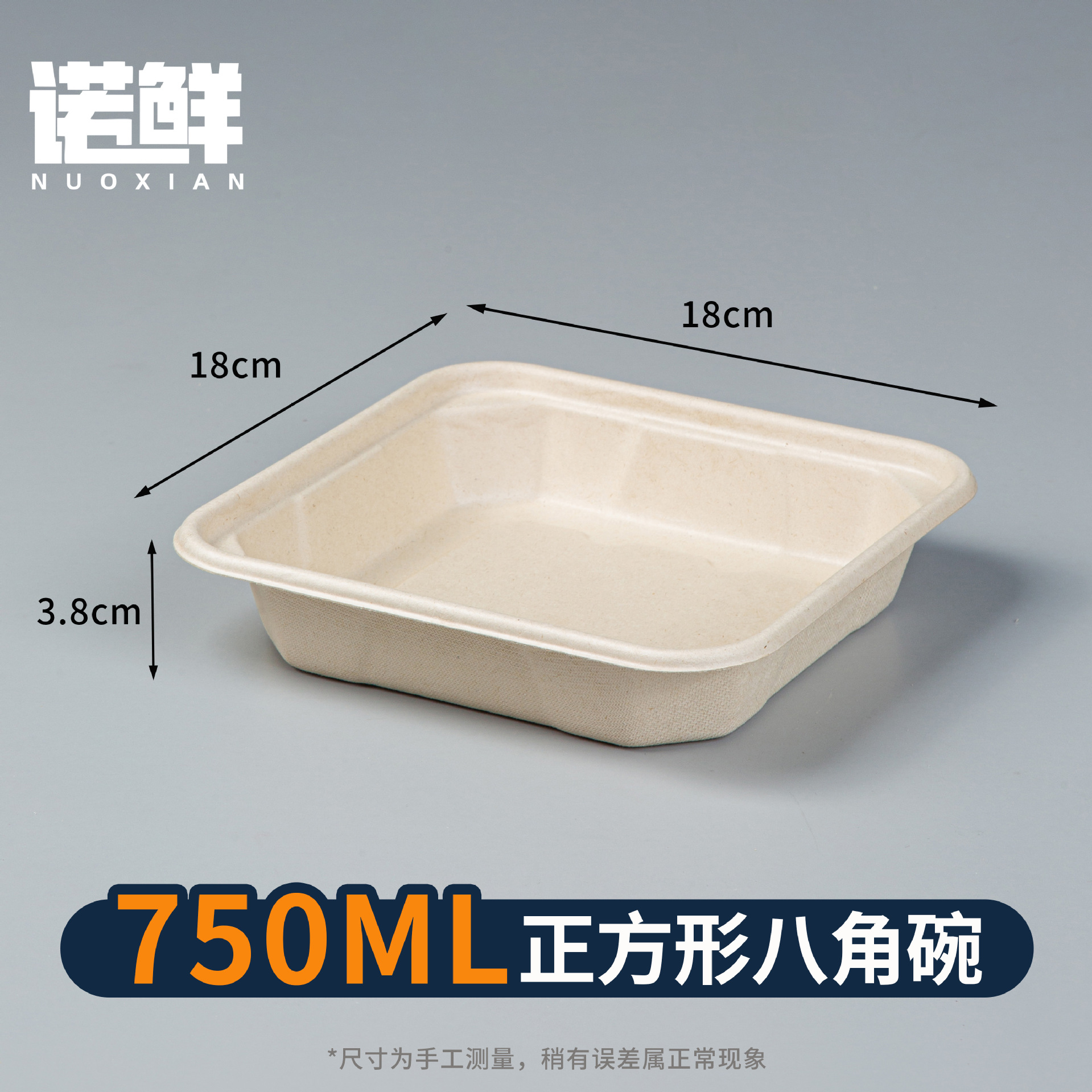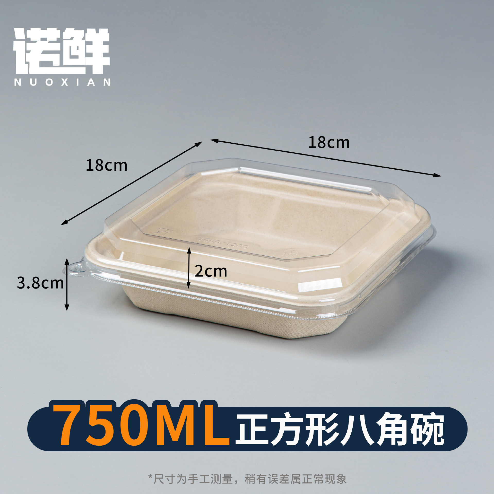 Квадратная восьмиугольная миска из мякоти 750 мл + прозрачная крышка 1 комплект