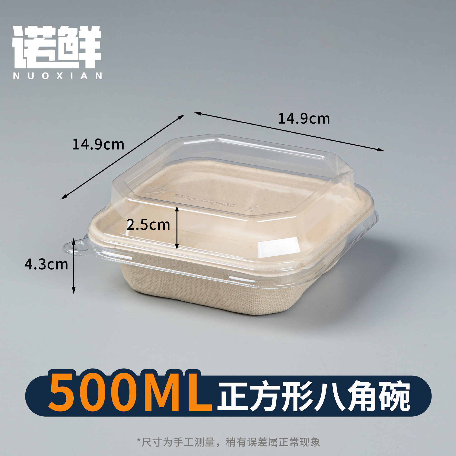 Квадратная восьмиугольная миска из мякоти 500 мл + прозрачная крышка 1 комплект