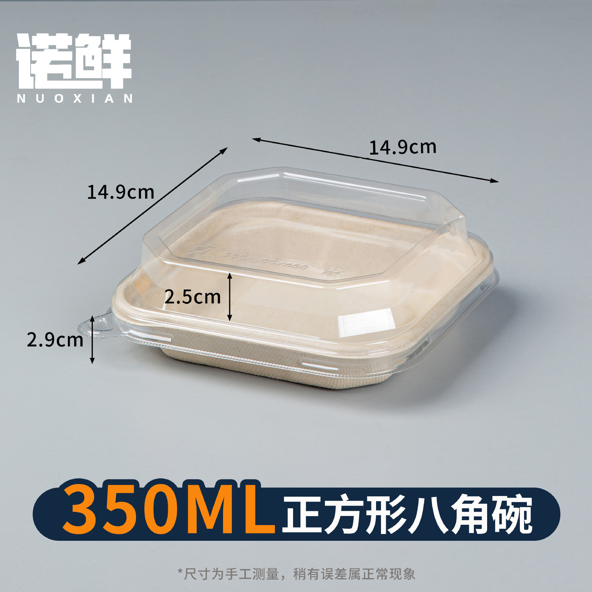 Квадратная восьмиугольная миска из мякоти 350 мл + прозрачная крышка 1 комплект