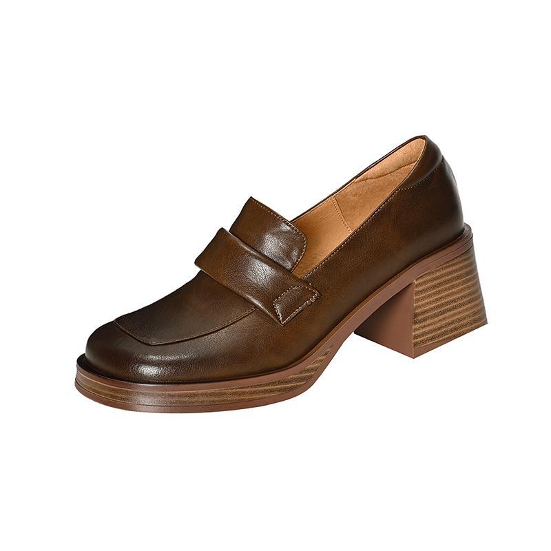 Главная страница > Мокасины из натуральной кожи Mr. M на массивном каблуке, женские однослойные туфли на высоком каблуке на толстой подошве с квадратным носком