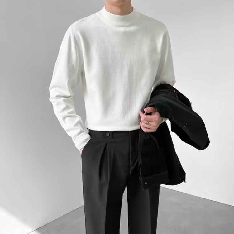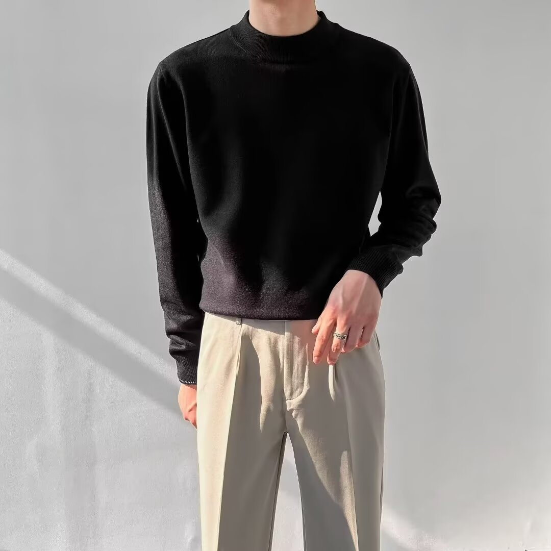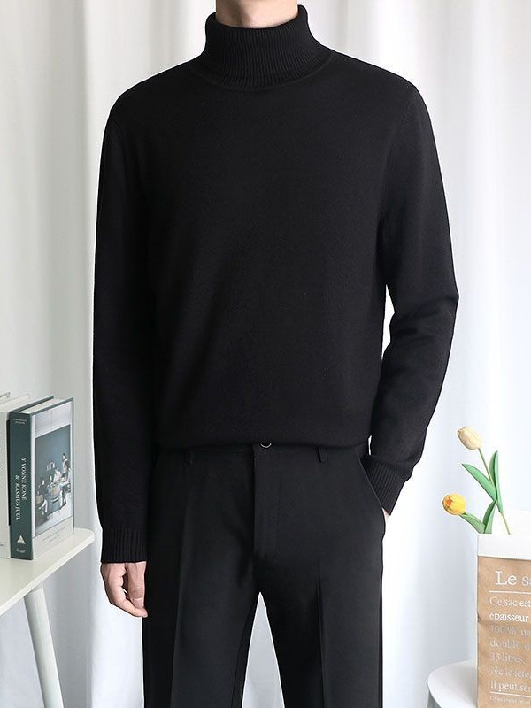 Главная страница > Свитер с высоким воротником мужской тонкая черная нить