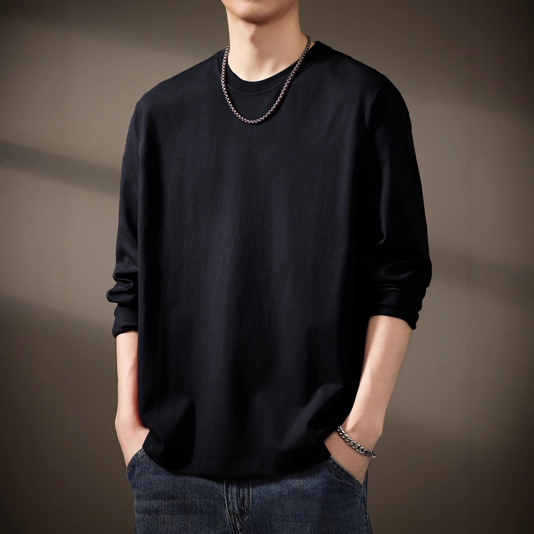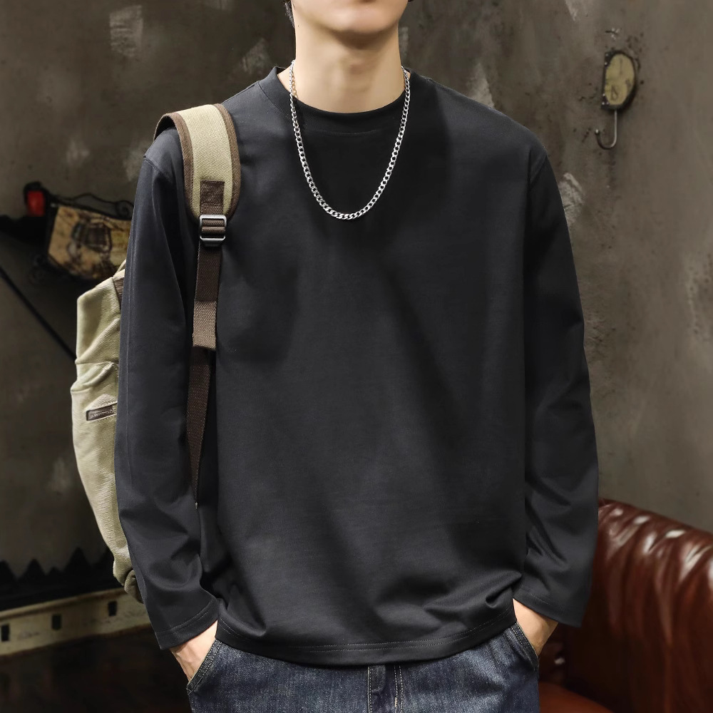 Главная страница > Тяжелый 300g хлопок черный белый с длинными рукавами футболка мужская нижняя рубашка весна и осень внутри топ с круглым вырезом свободный и универсальный