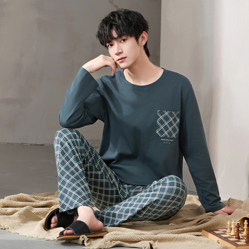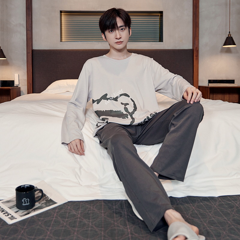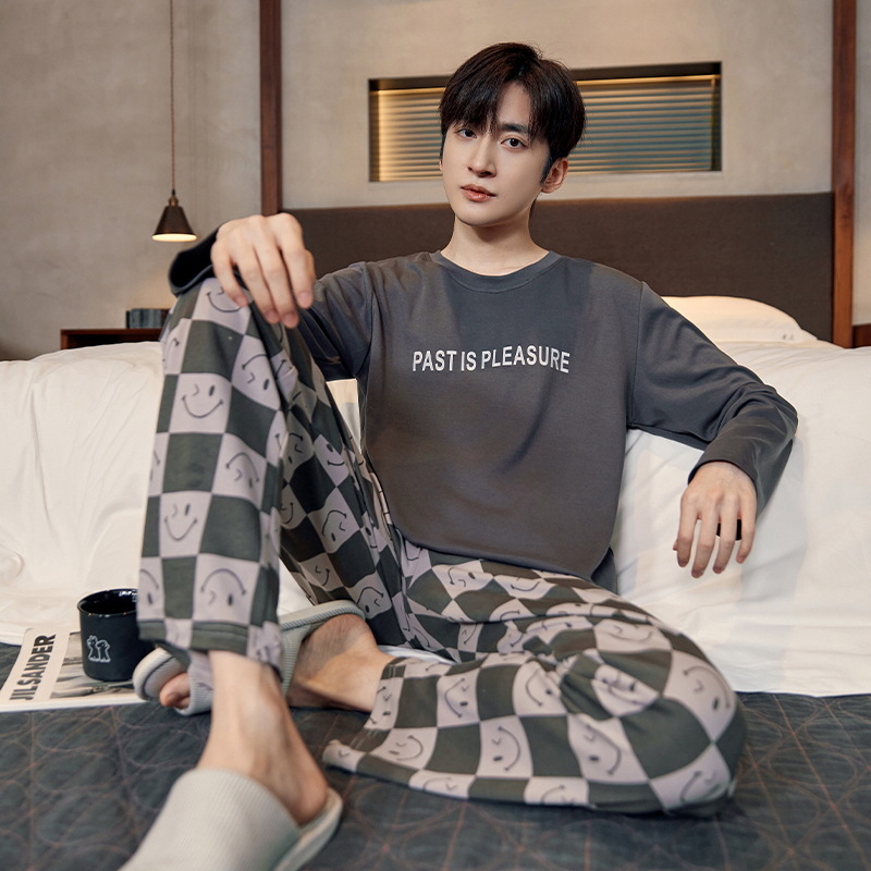 Главная страница > Мужская пижама весна и осень 2024 новый мужской хлопок набор весна и осень лето мужской английский домашний костюм летняя модель