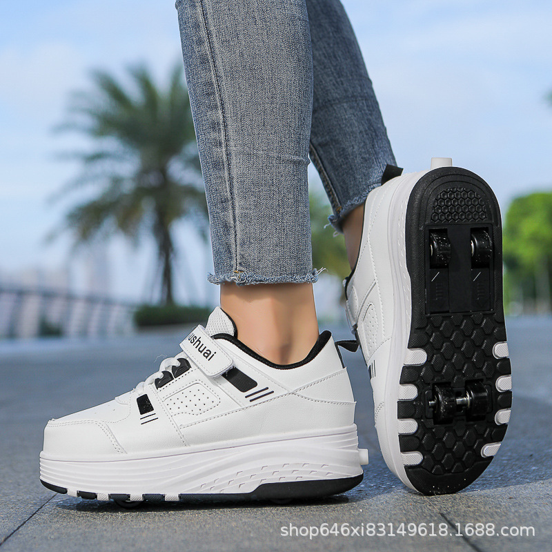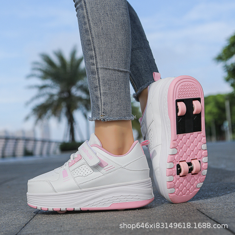 Студенческая ходная обувь Четырёхколесная детская роликобежная обувь для мужчин и женщин Ужатая модернизированная версия Легкая обувь с колесами новый