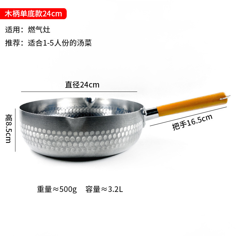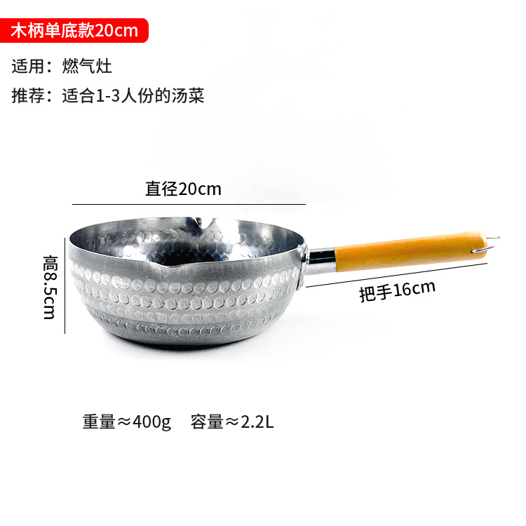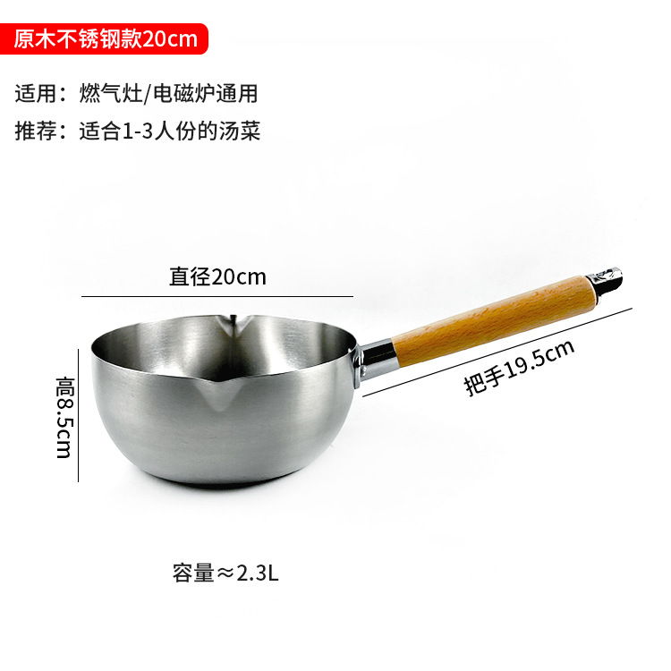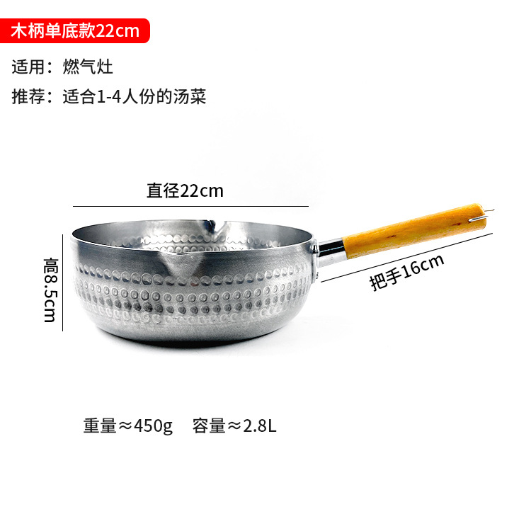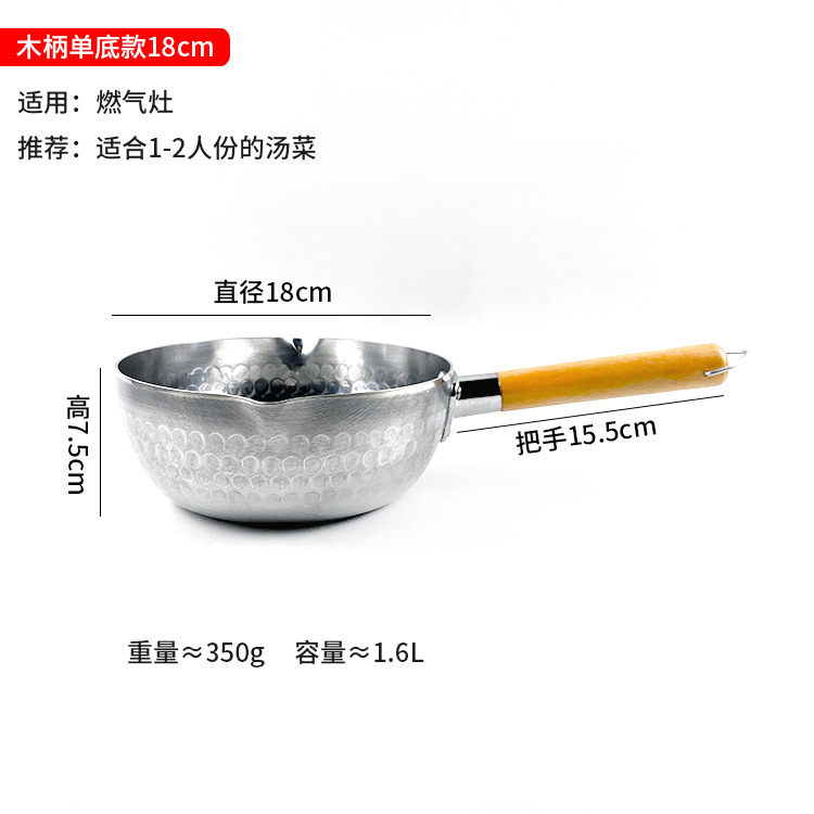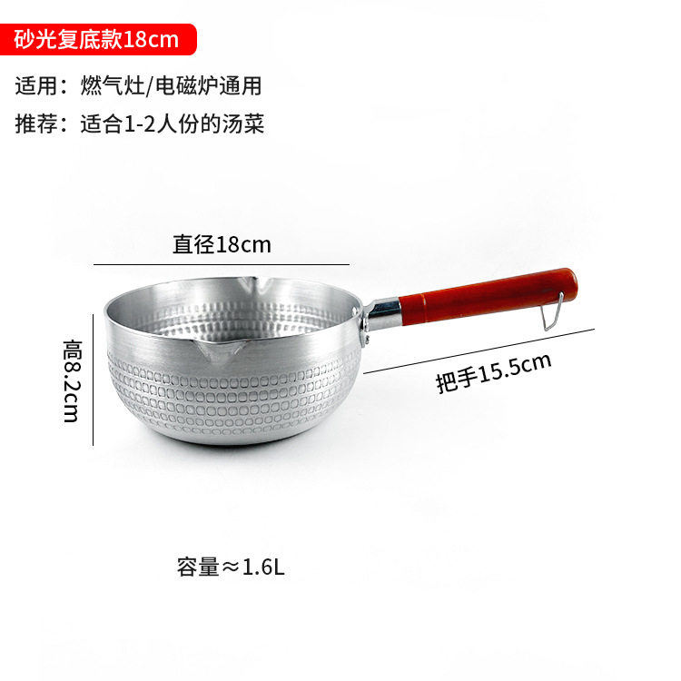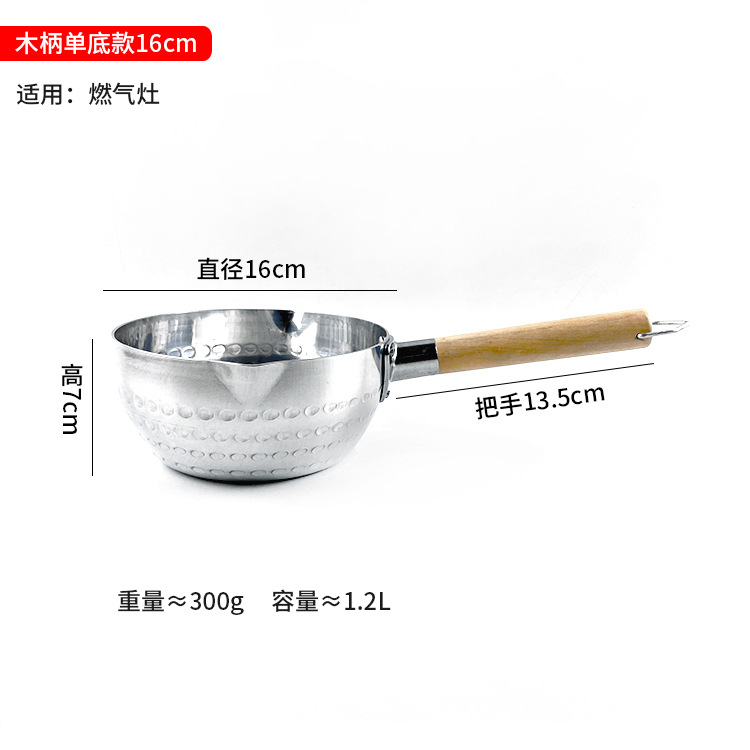 Сковорода для снега Алюминиевая деревянная ручка Антипригарная Лапша для приготовления пищи Острая Горячая каша Суп с рисовой лапшой Ковш для японского молока Сковорода для рамэн