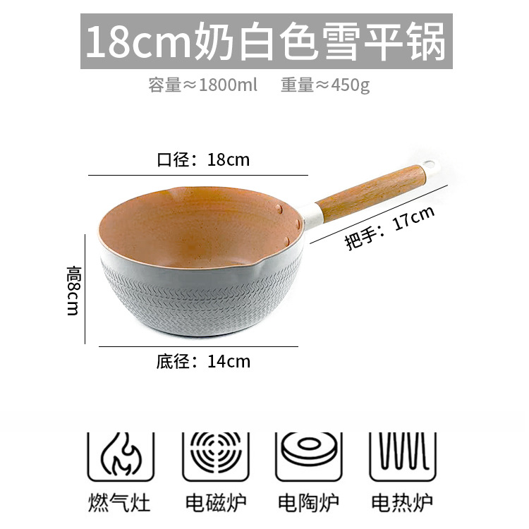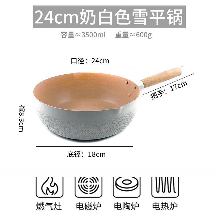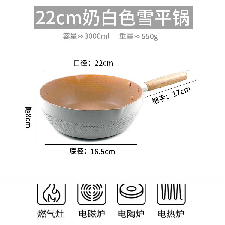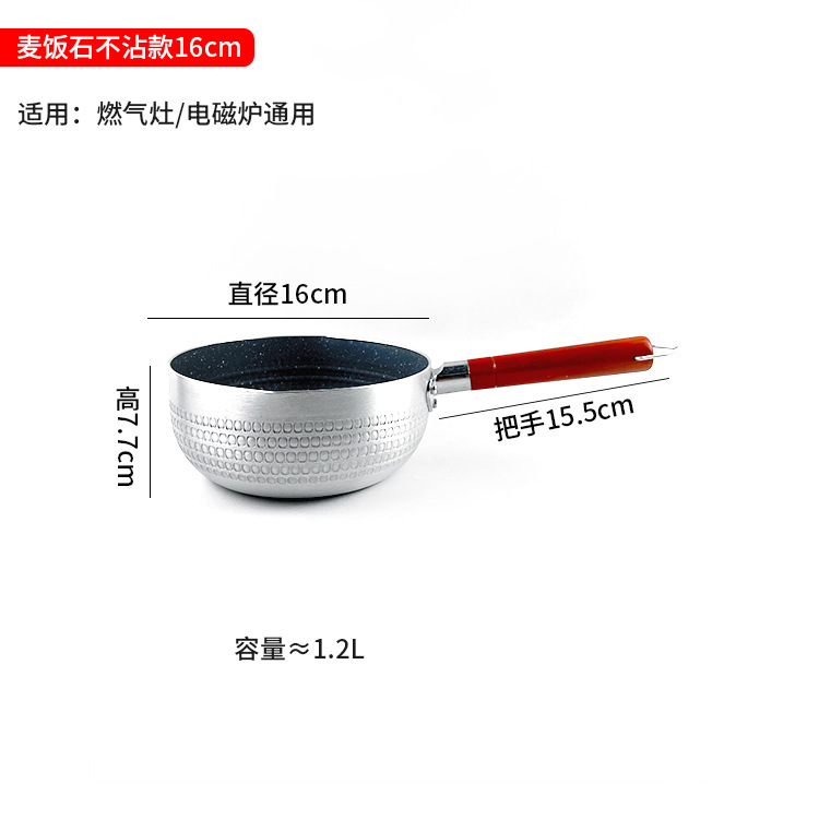 Главная страница > Сковорода для снега Алюминиевая деревянная ручка Антипригарная Лапша для приготовления пищи Острая Горячая каша Суп с рисовой лапшой Ковш для японского молока Сковорода для рамэн