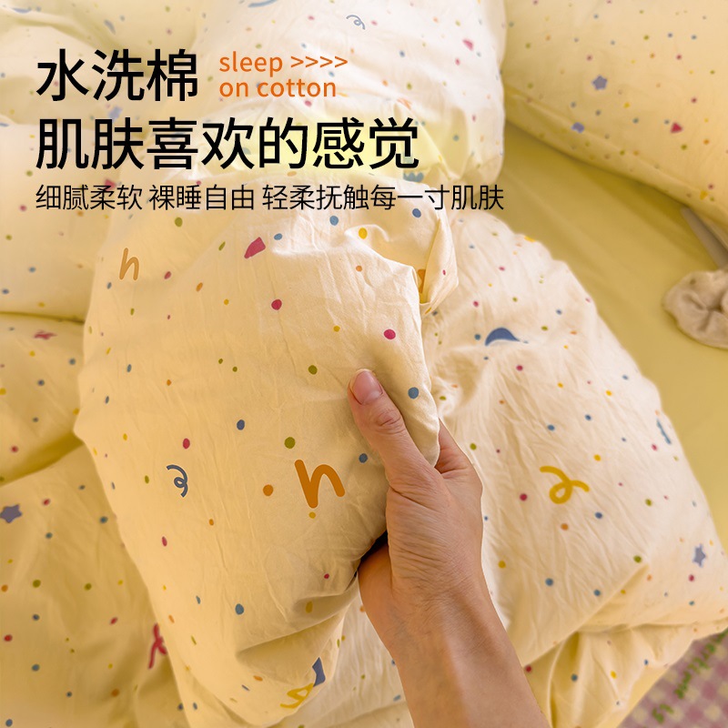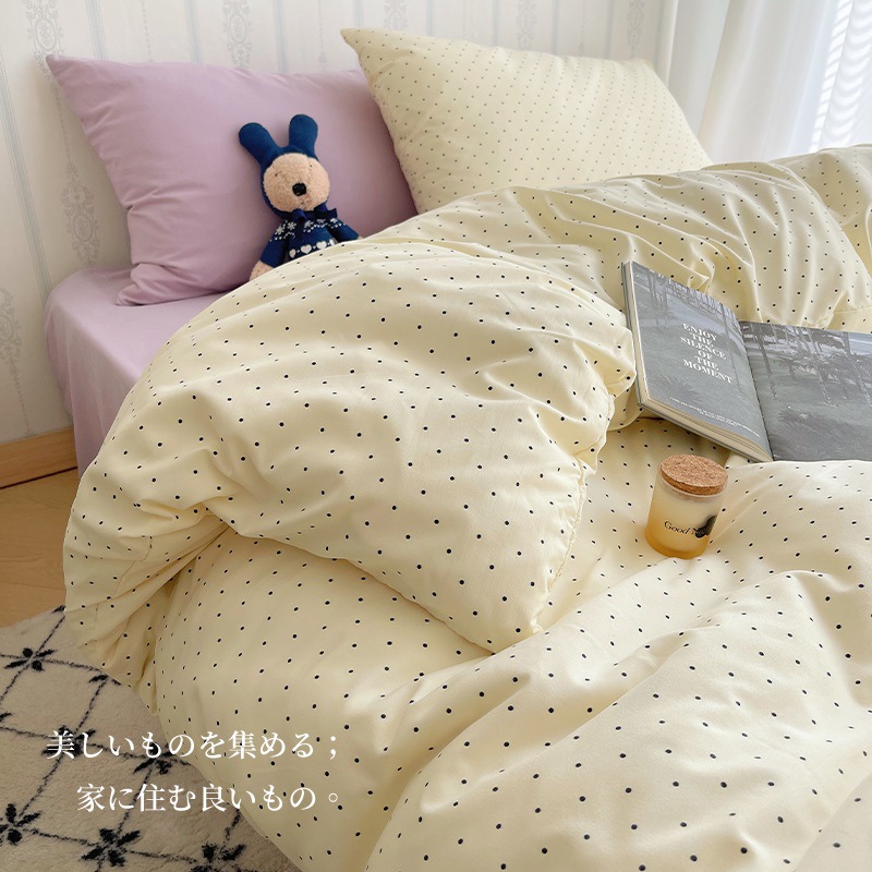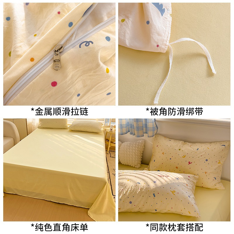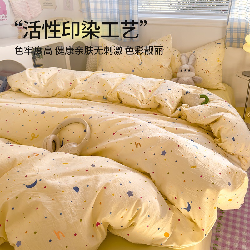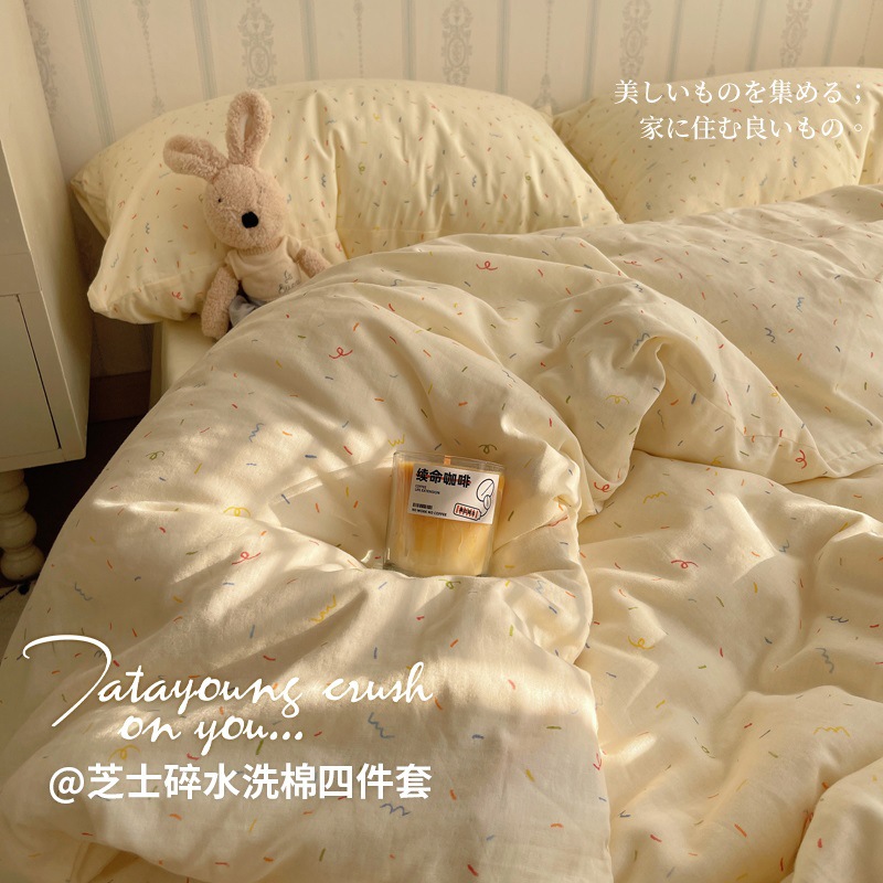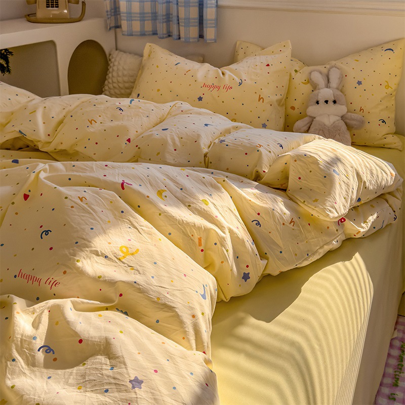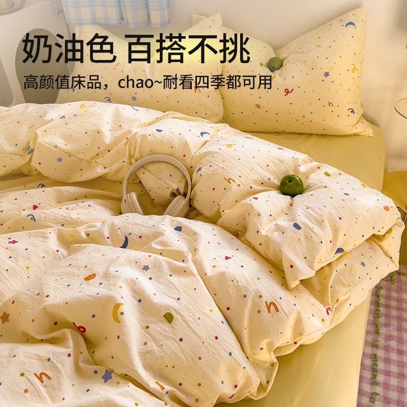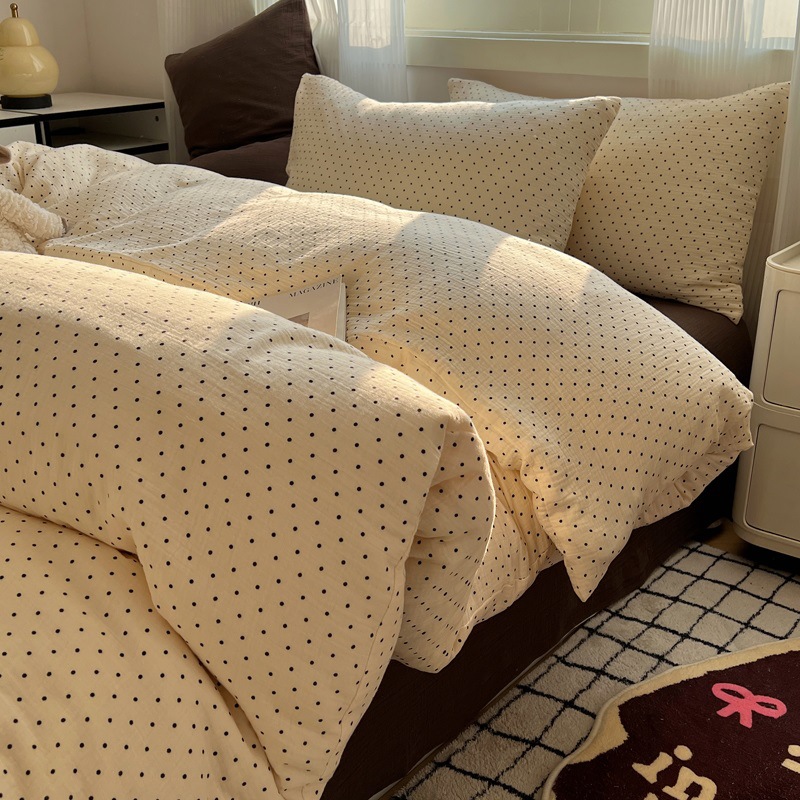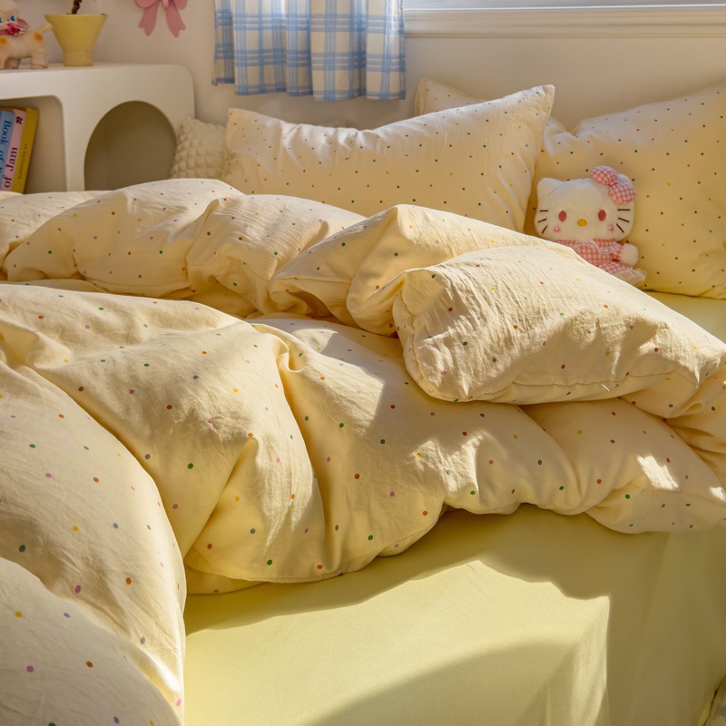Главная страница > Комплект постельного белья из четырех предметов в стиле кремового цвета, из стираного хлопка, с разноцветными точками, пододеяльник, простыня, комплект постельного белья из трех предметов для общежития, 4