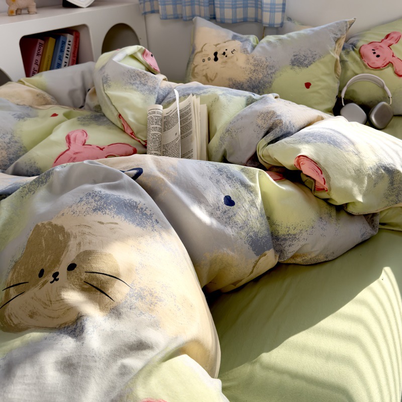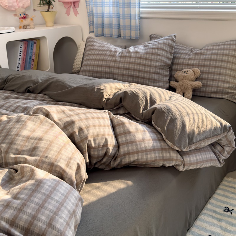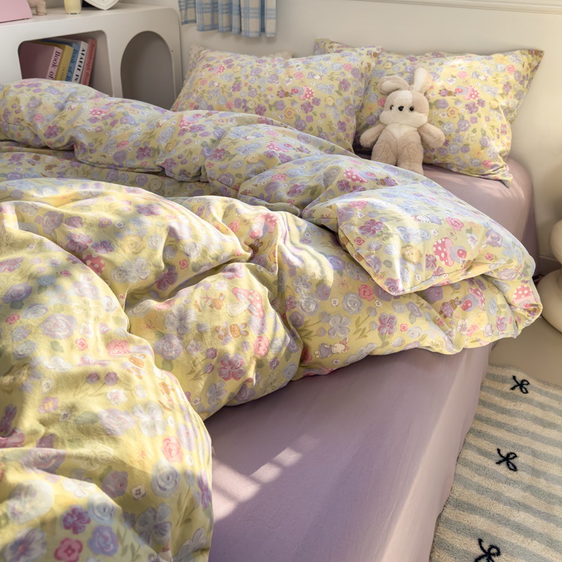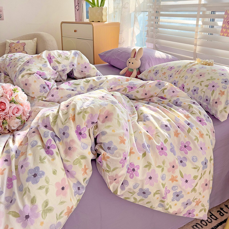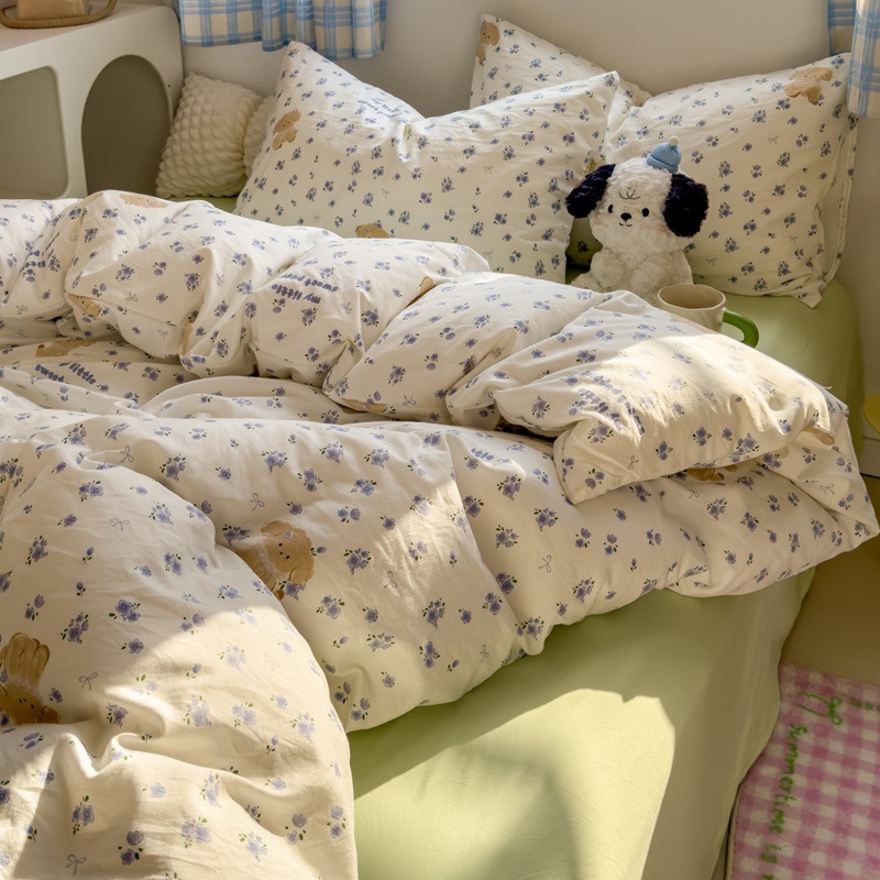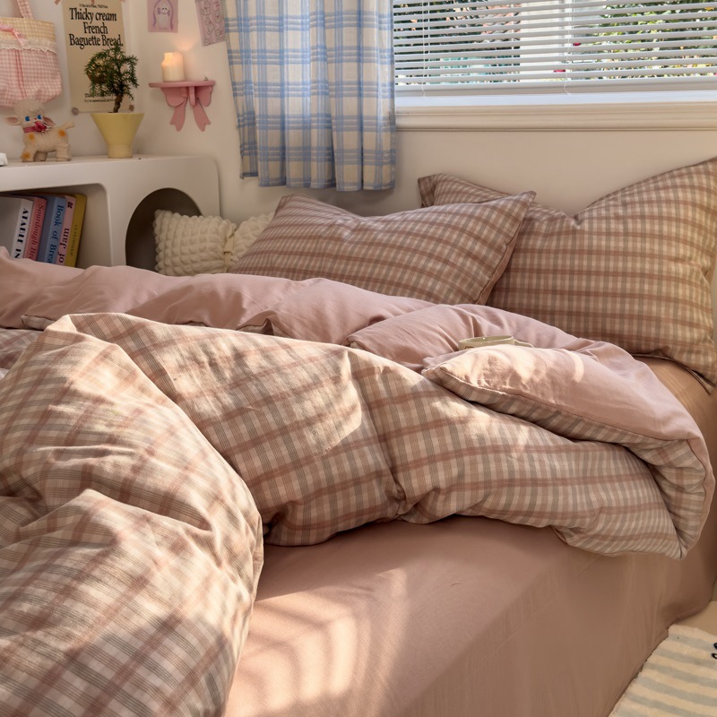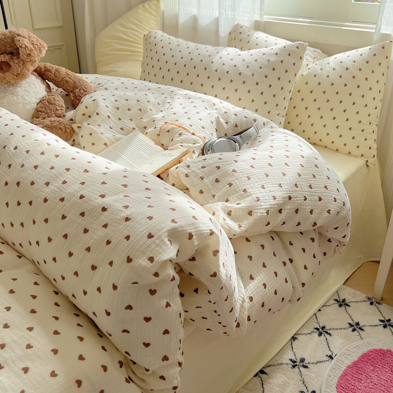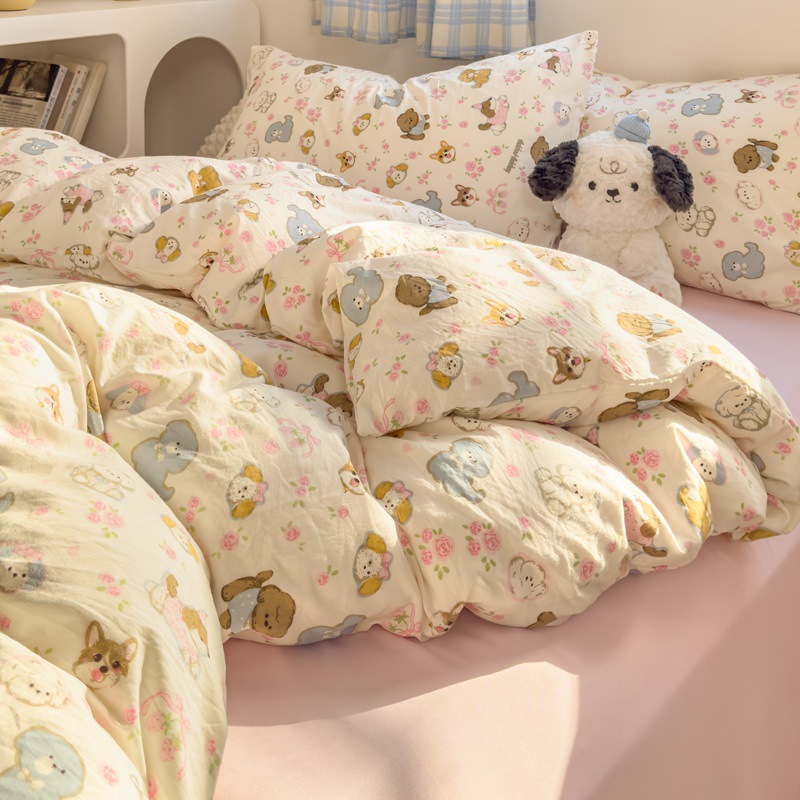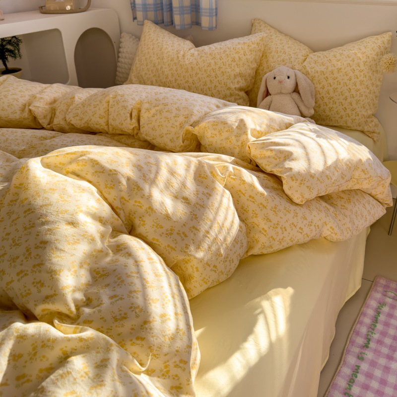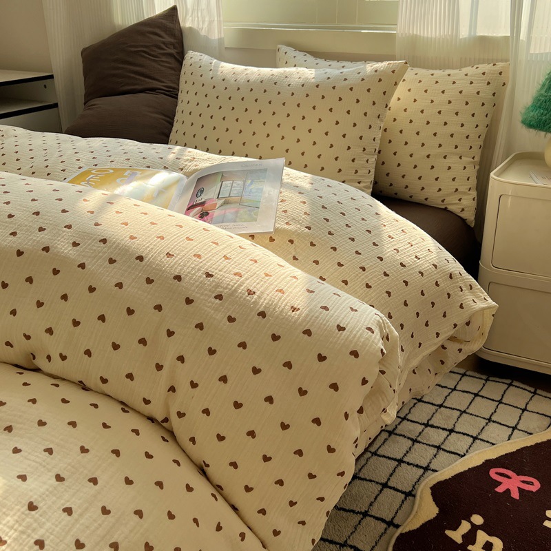 Главная страница > Комплект постельного белья из четырех предметов в стиле кремового цвета, из стираного хлопка, с разноцветными точками, пододеяльник, простыня, комплект постельного белья из трех предметов для общежития, 4
