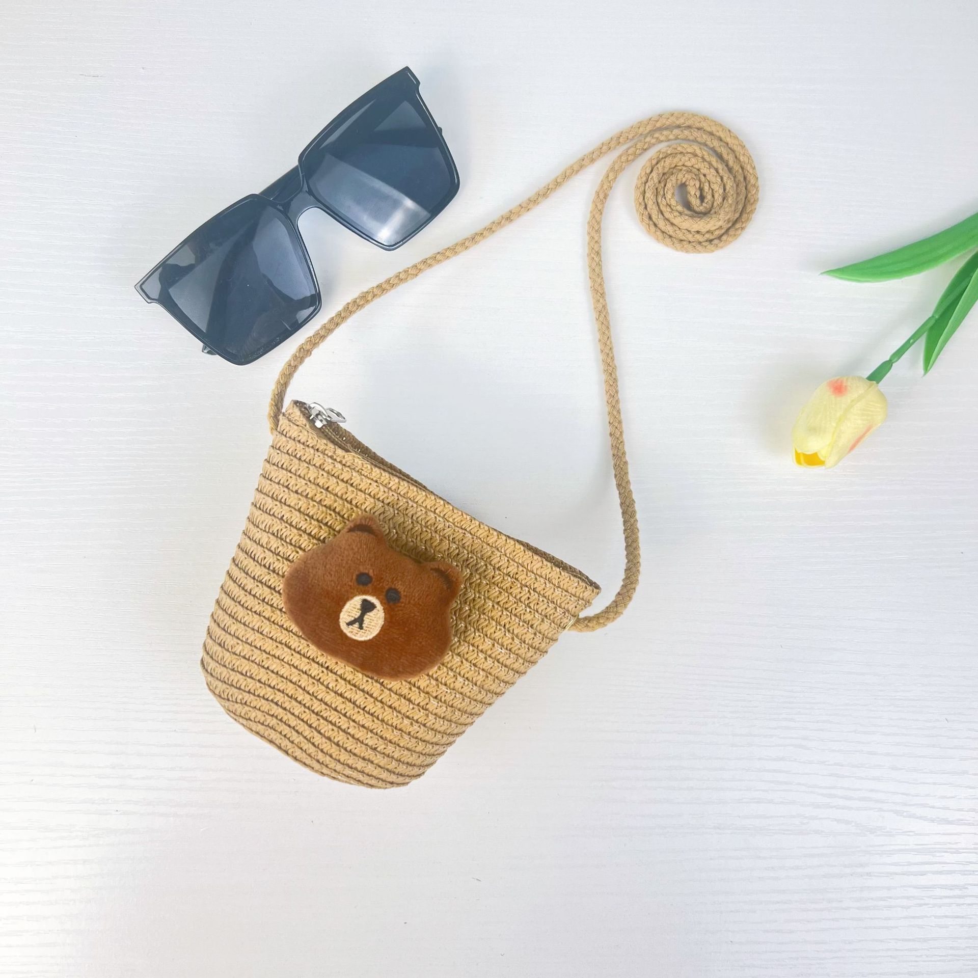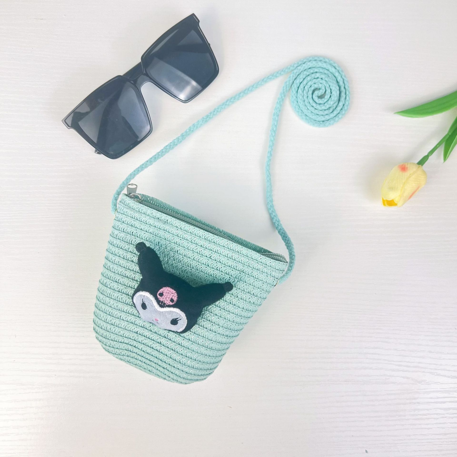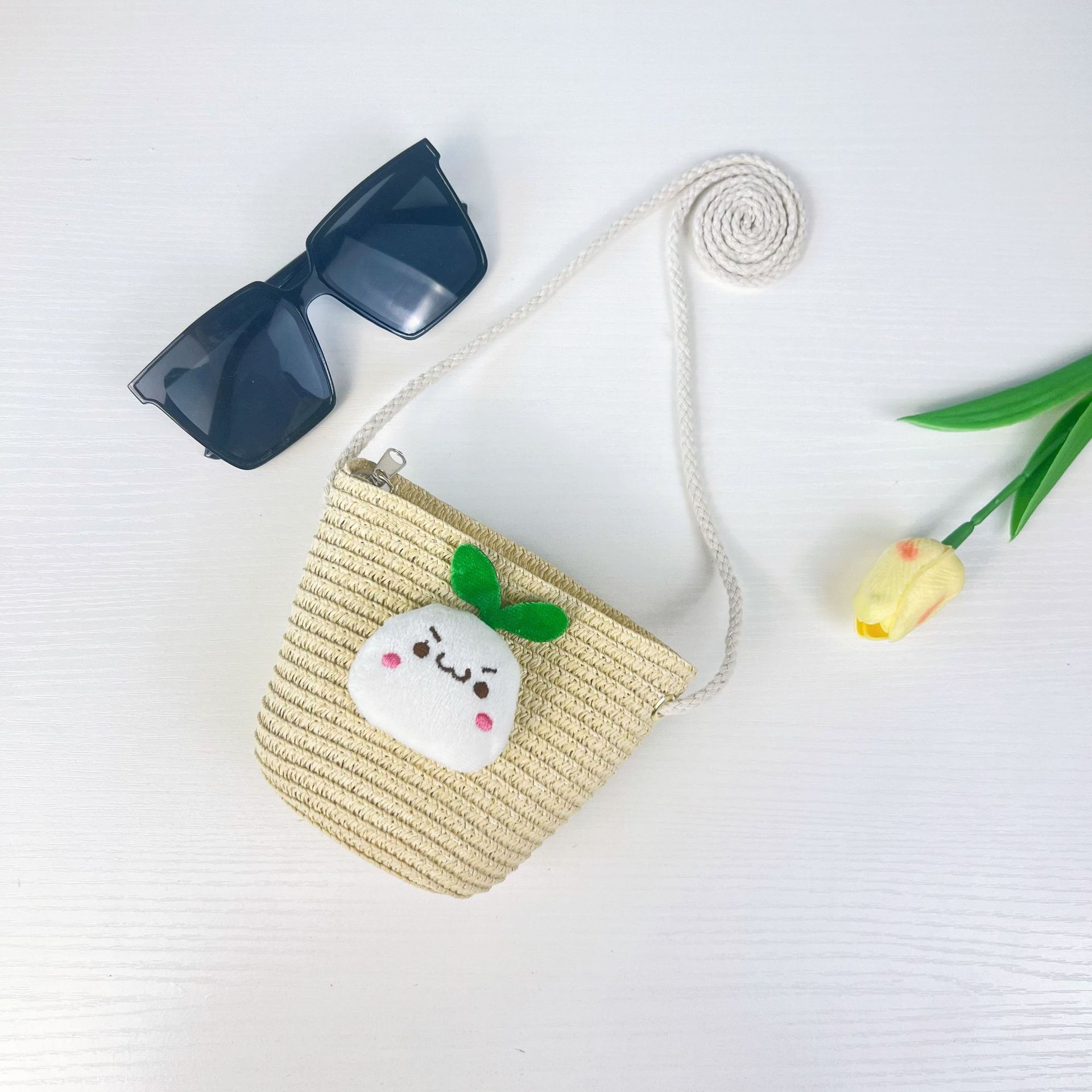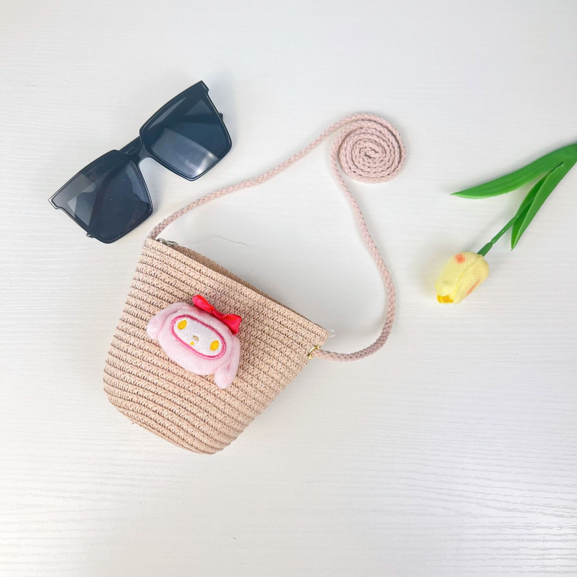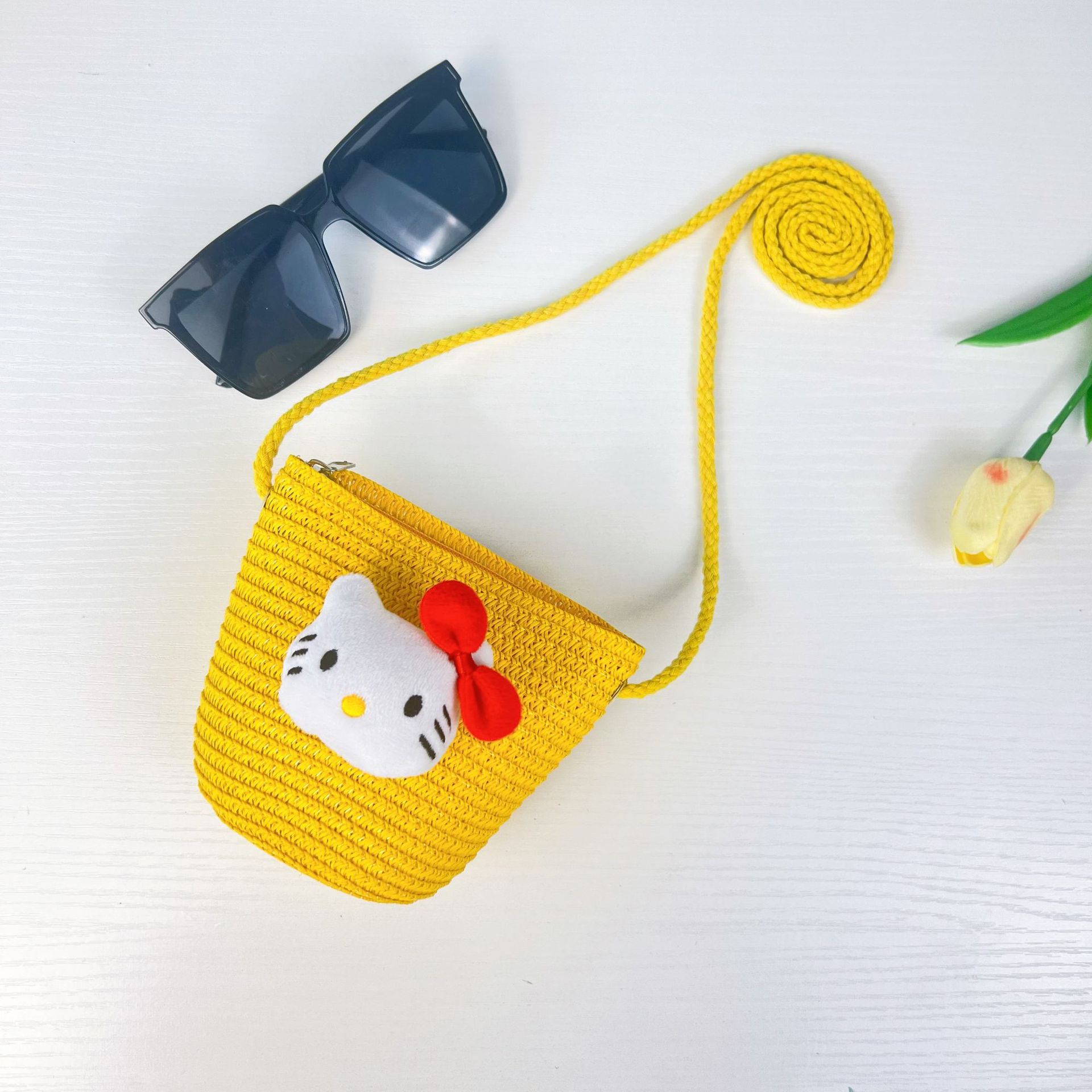 Главная страница > Детская ручная тканая сумка милый мультяшный кот соломенная сумка для мужчин и женщин