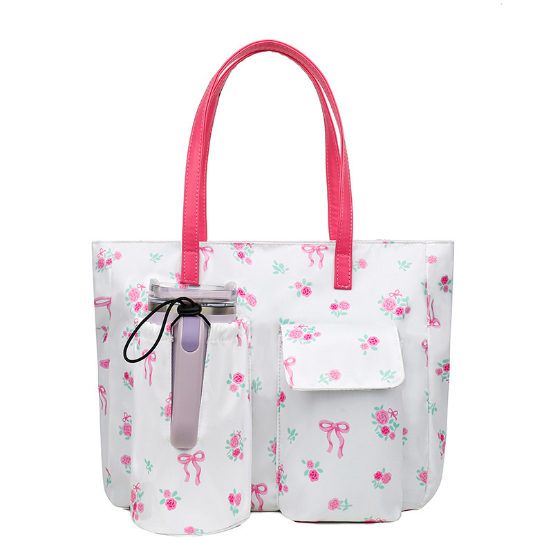Сумка-тоут с принтом бабочки, большая вместимость, летняя новинка 2025 года, литературный стиль, сумка через плечо, сумка для бутылки с водой