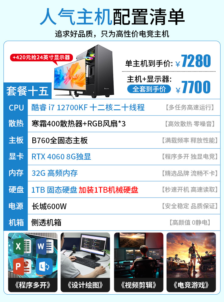12G независимый дисплей i3i5i7 Интернет-кафе киберспортивная игра настольный компьютер хост дизайн прямая трансляция сборка компьютер полный комплект партии
