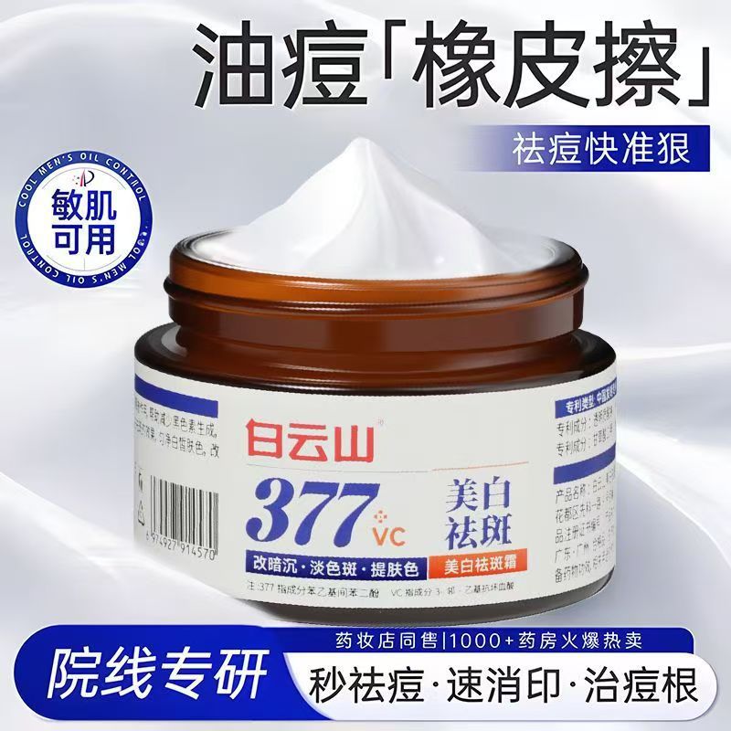 Baiyunshan подлинный отбеливающий и удаляющий веснушки, увлажняющий, расширяющий пятна, веснушки и осветляющий, обновленная версия 377, 30 г