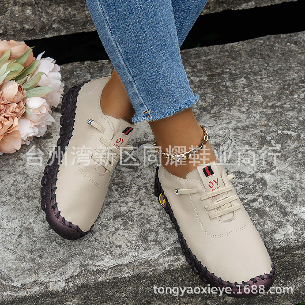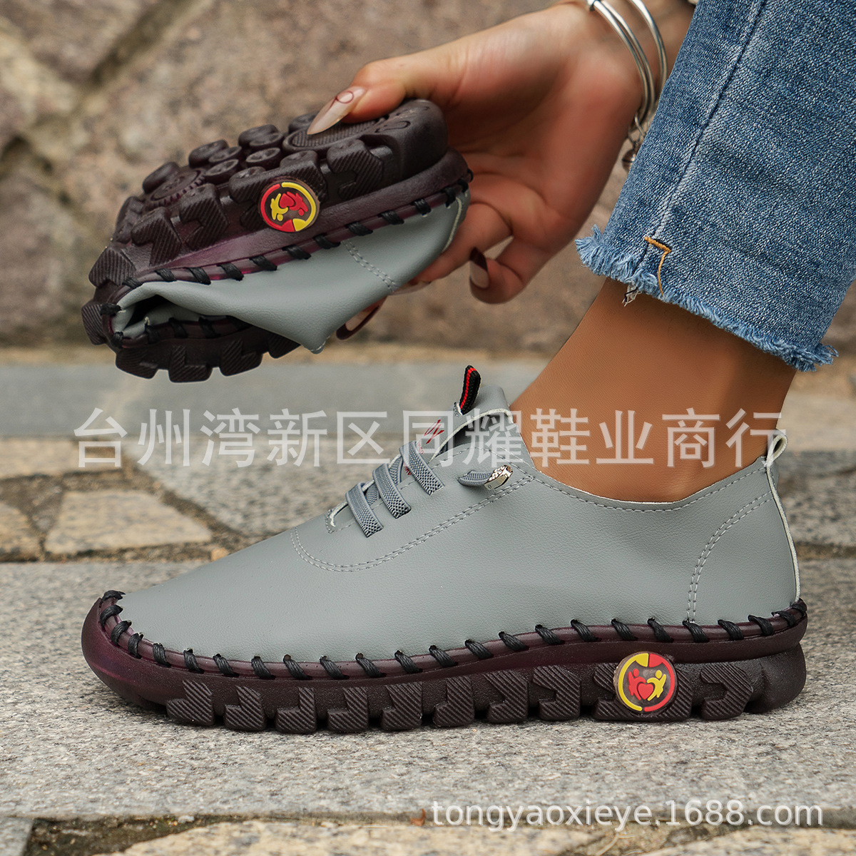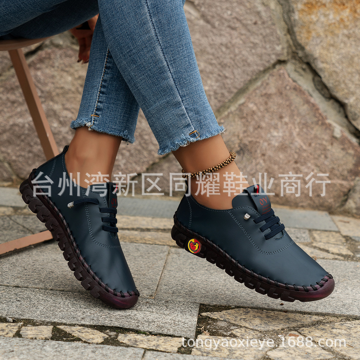 Весна и лето новые трансграничные мягкие подошвы римские дышащие ретро полые швы сосновые швы большие размеры женские туфли одиночные туфли мама туфли