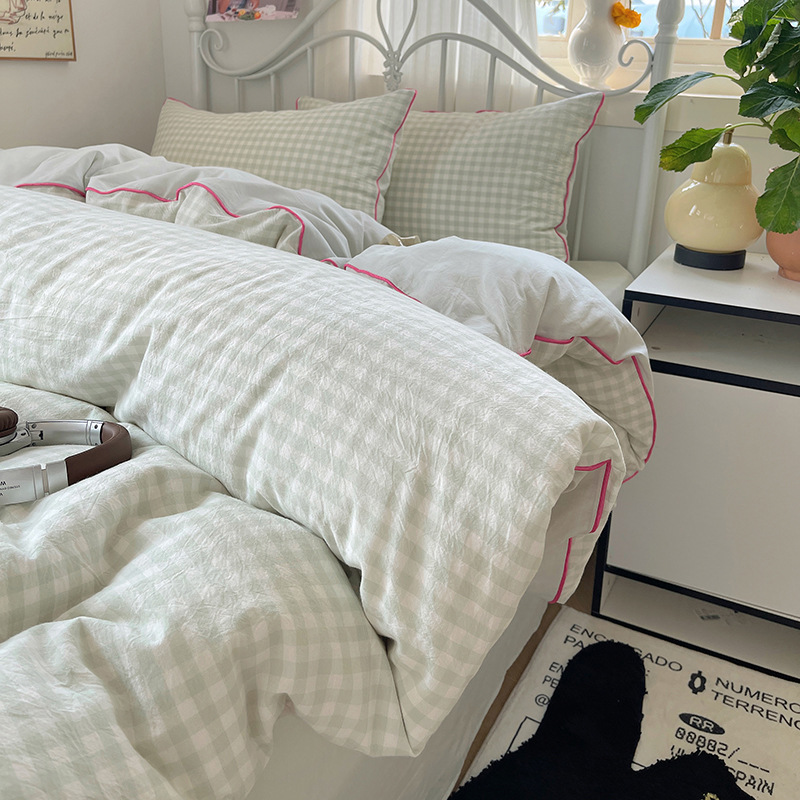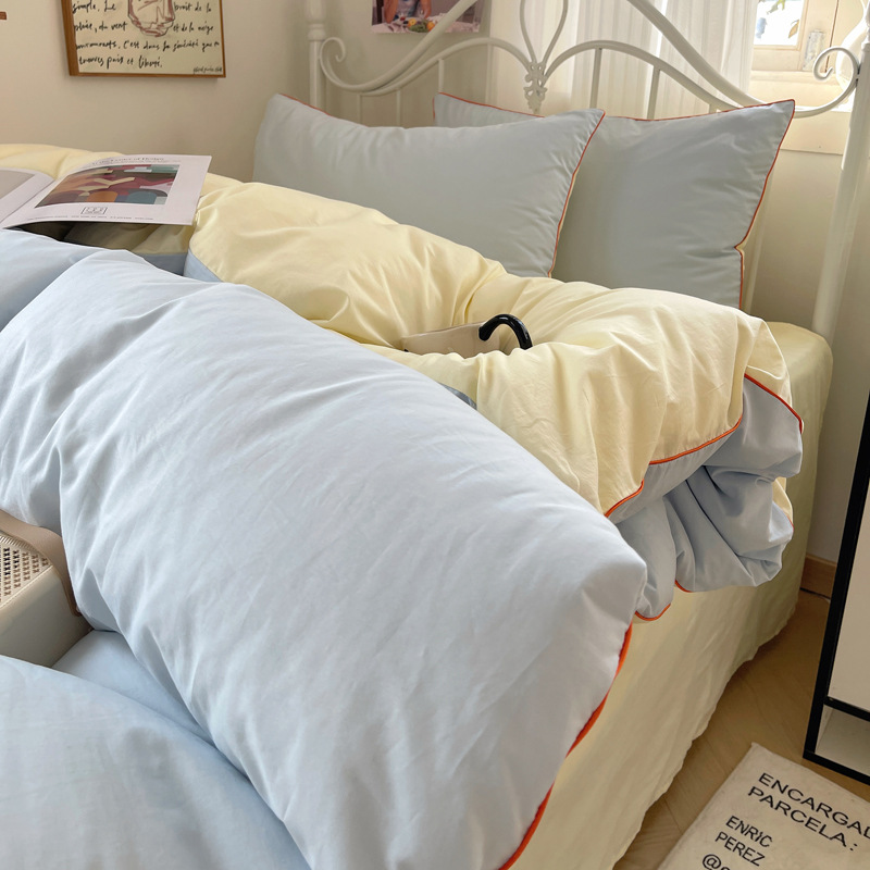 Главная страница > Супермягкий стираный хлопковый плед, маленький свежий комплект из четырех предметов, комплект из трех предметов для студенческого общежития, простыни, пододеяльник, простыни, оптовая групповая покупка