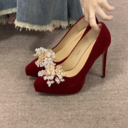 Главная страница > Китайская китайская одежда свадебная обувь женская водонепроницаемая платформа с толстым подошвением и помолвкой на высоких каблуках красные высокие бархатные одиночные туфли весной новый