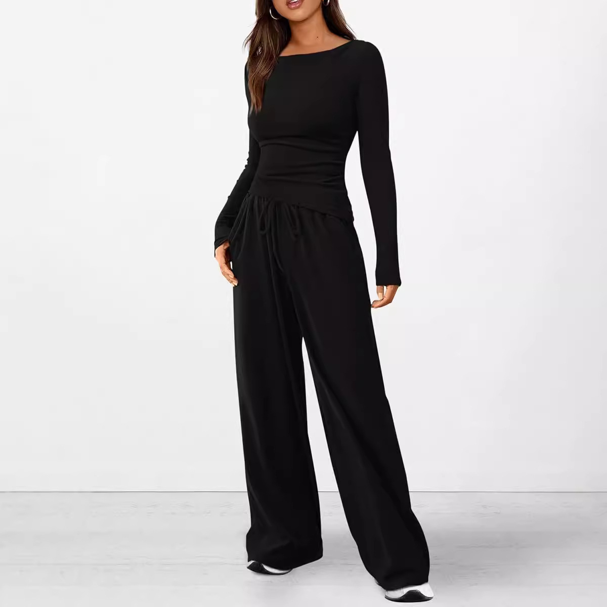 Главная страница > Хит продаж осени 2025 года: стильный спортивный костюм из асимметричной футболки с длинным рукавом и широких брюк от Amazon.