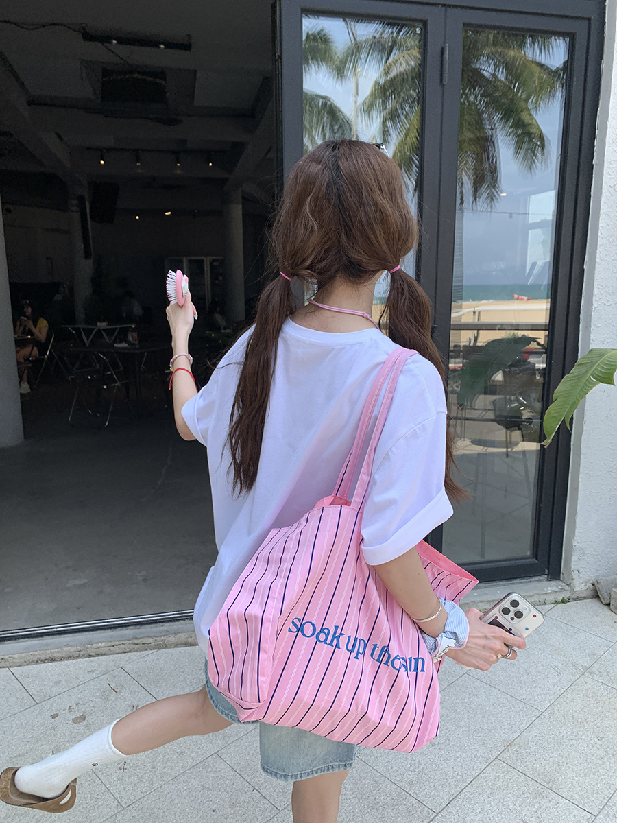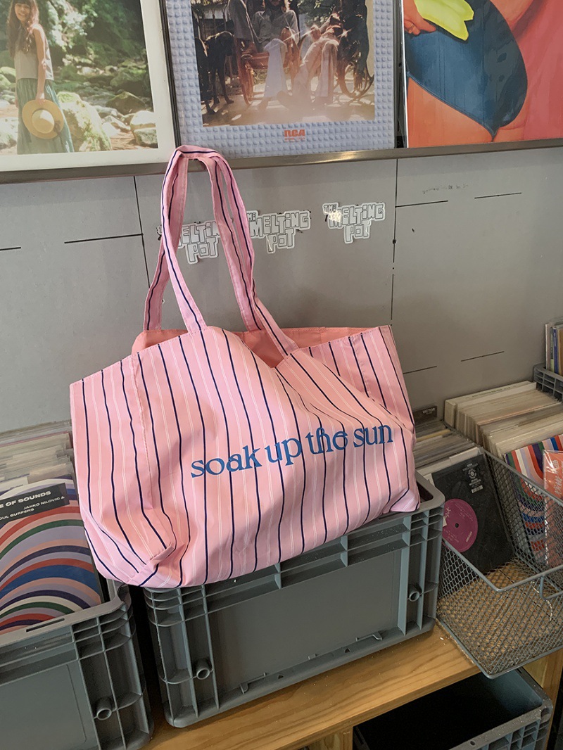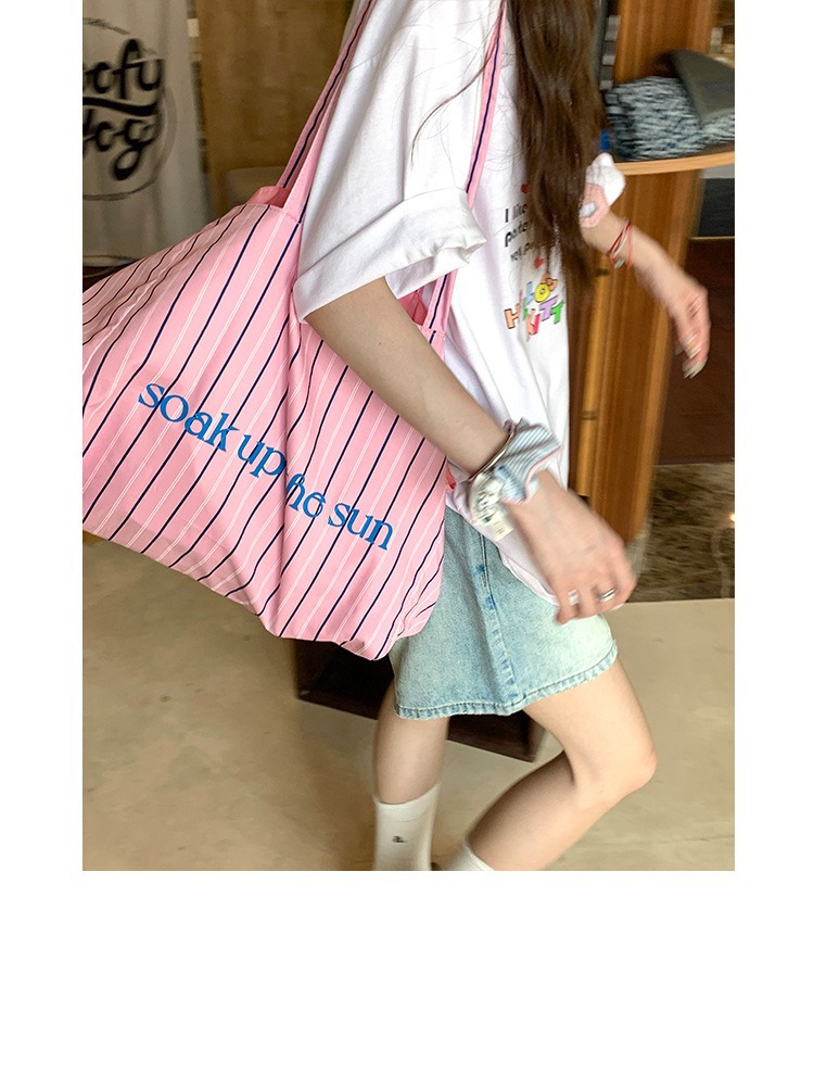 Главная страница > Корейская версия ins модная полосатая холщовая сумка с буквенной печатью 2025 большая емкость на одно плечо портативная сумка для покупок