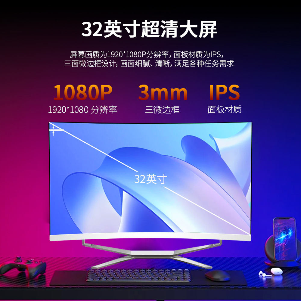 Моноблок 32inch с изогнутым экраном для трансграничной электронной торговли, игр, соревнований и офисной работы. Прямые поставки от производителя.