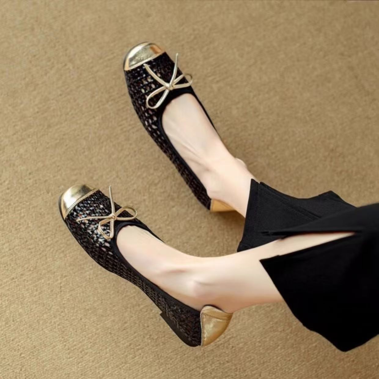 Главная страница > Летние женские туфли 2025 года, дышащие, новые модные повседневные балетки, плоские, неглубокие, из кожи, универсальные.