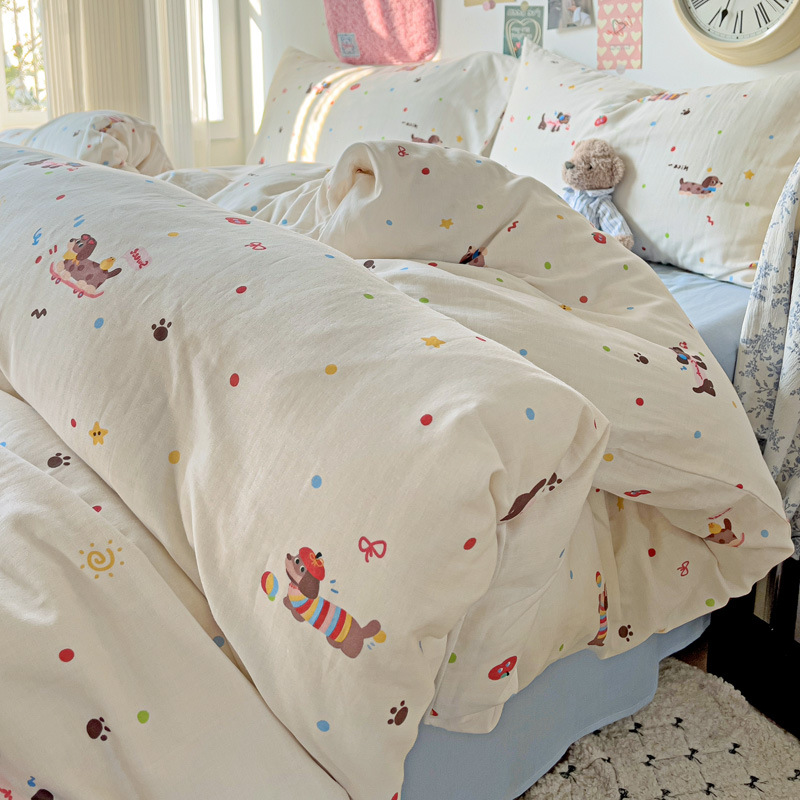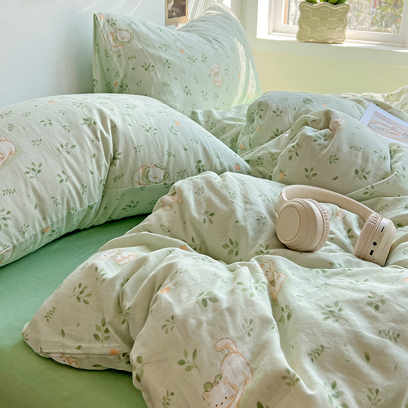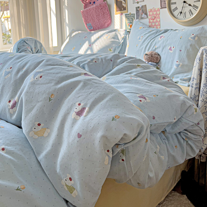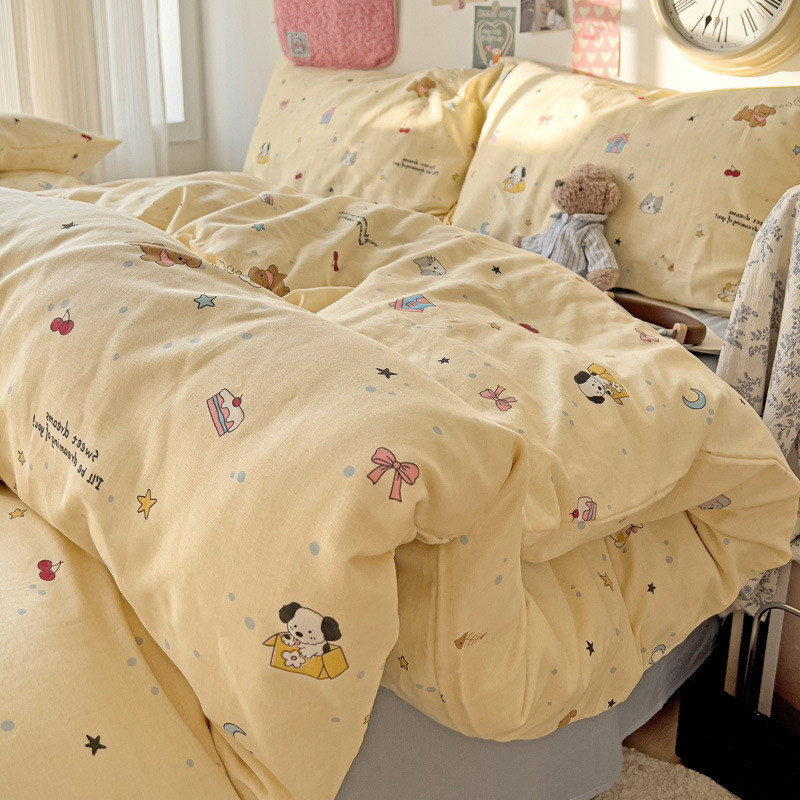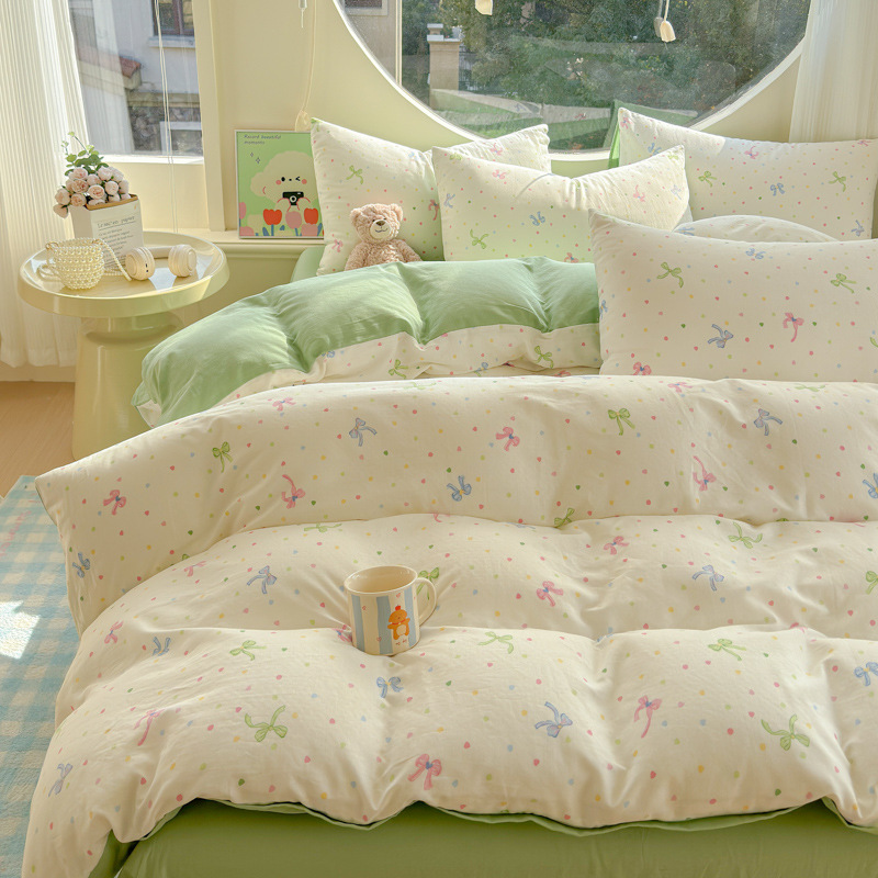 Главная страница > Класс А, Материнская и детская хлопковая двухслойная пряжа с принтом из четырех предметов, свежий в стиле Общежития, домашняя Студенческая простыня, простыня