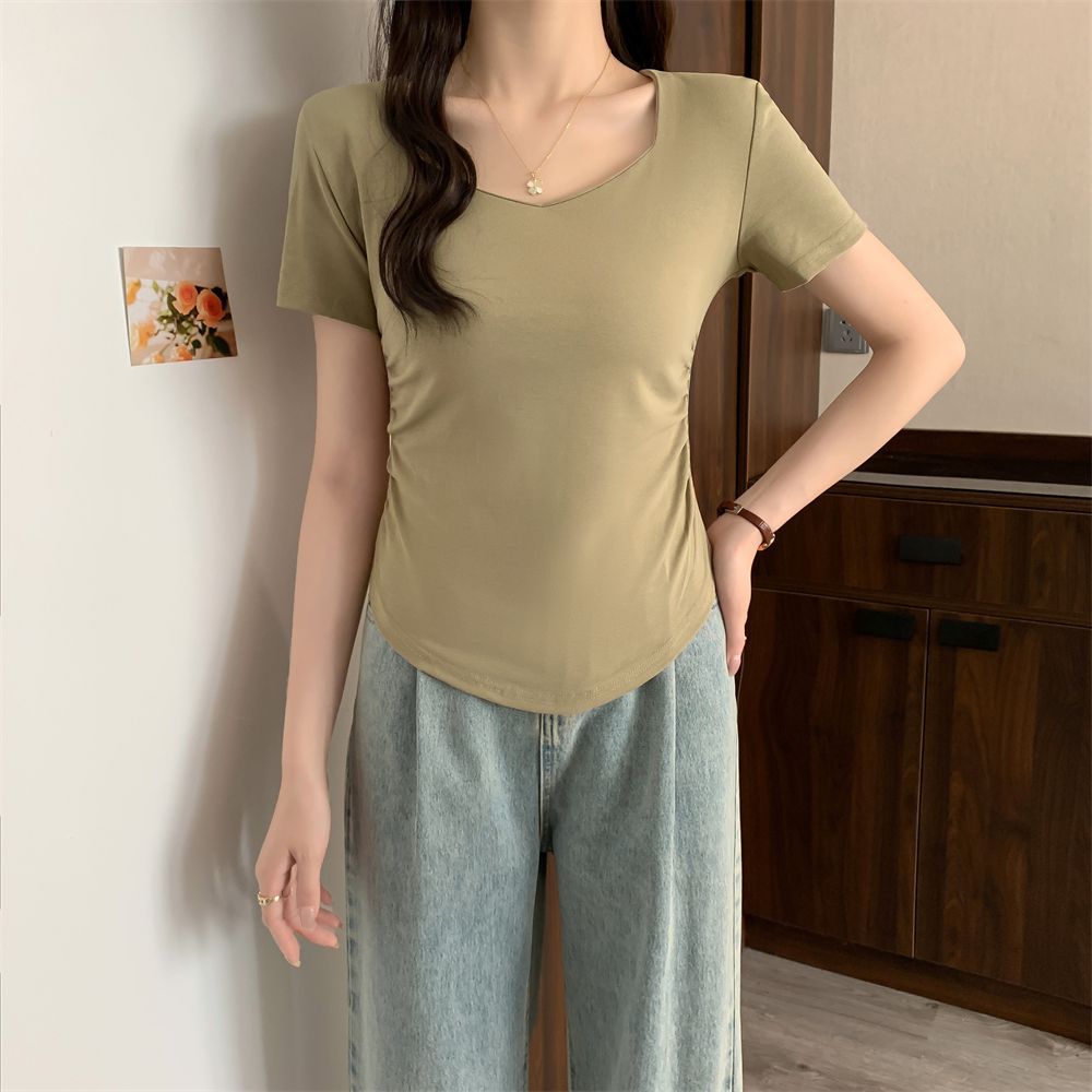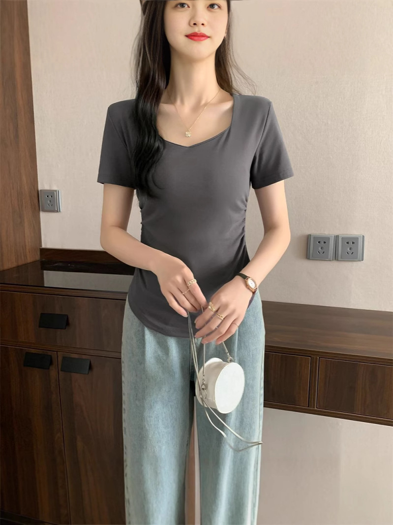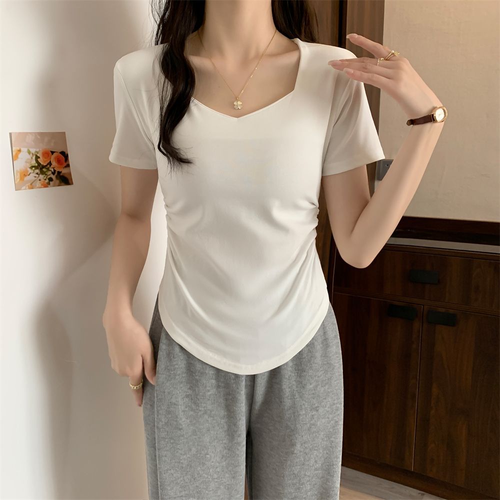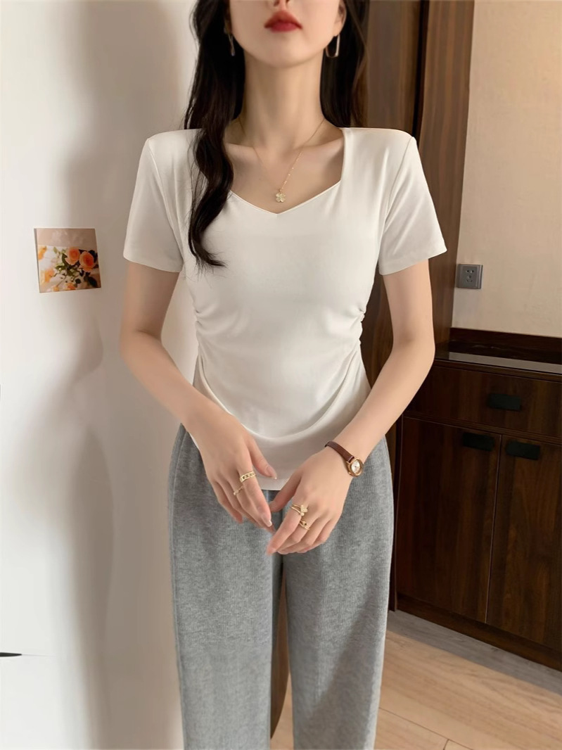 Белая рубашка с короткими рукавами на плече