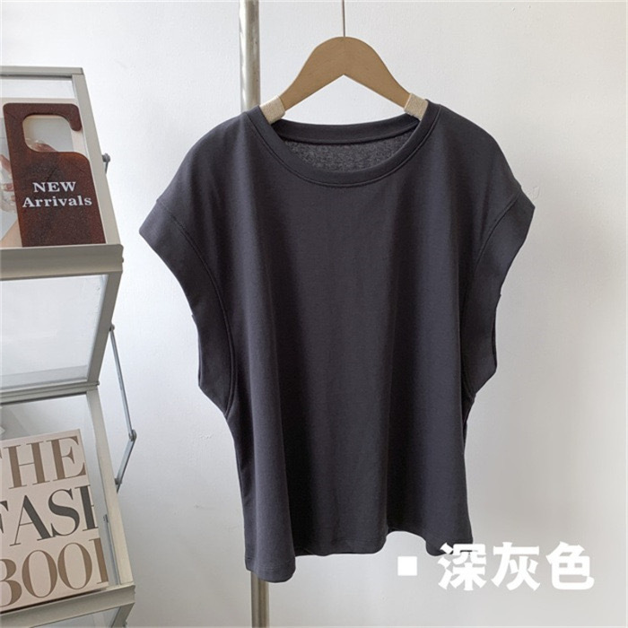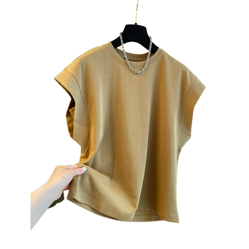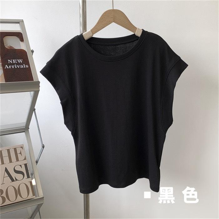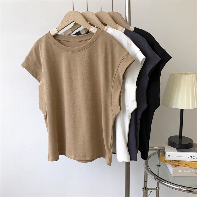 Главная страница > Южнокорейская футболка Dongdaemun с нишей и рукавами Feifei, женская свободная футболка без рукавов с короткими рукавами, топ с заниженными плечами и рукавами для женщин