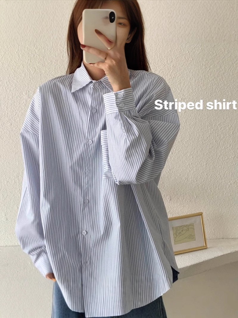 Главная страница > Новые полосатые рубашки, топы для женщин, весна и осень, свободный дизайн в корейском стиле, ниша для ранней осени, рубашки с длинными рукавами, повседневные куртки